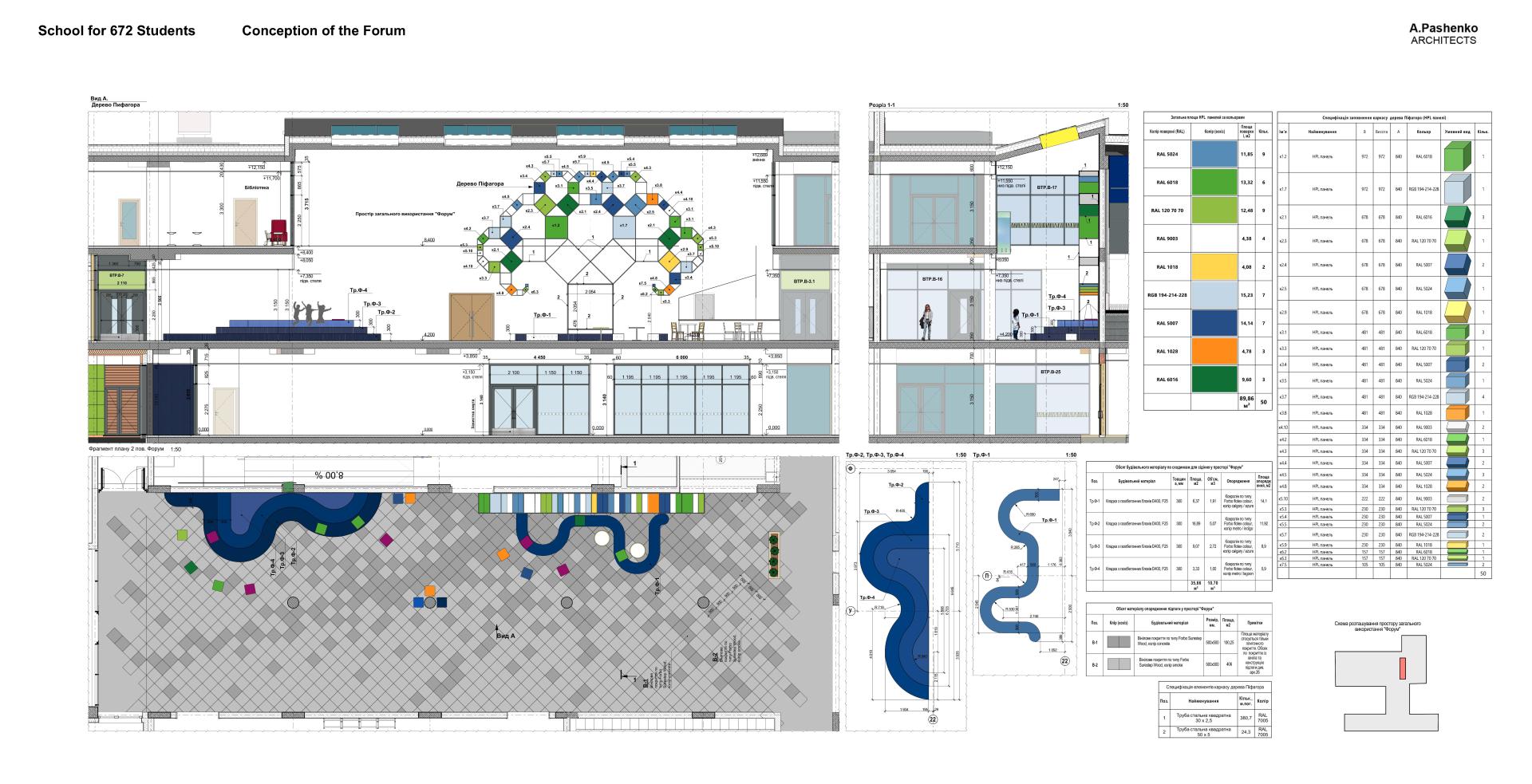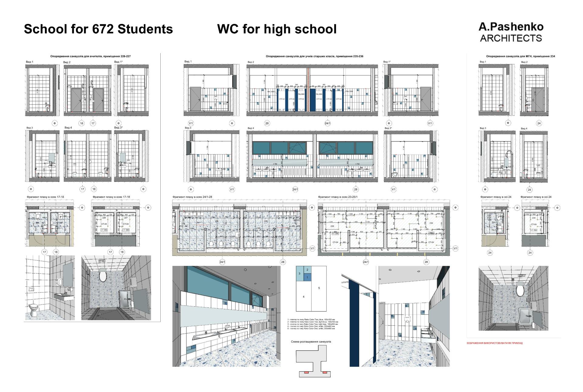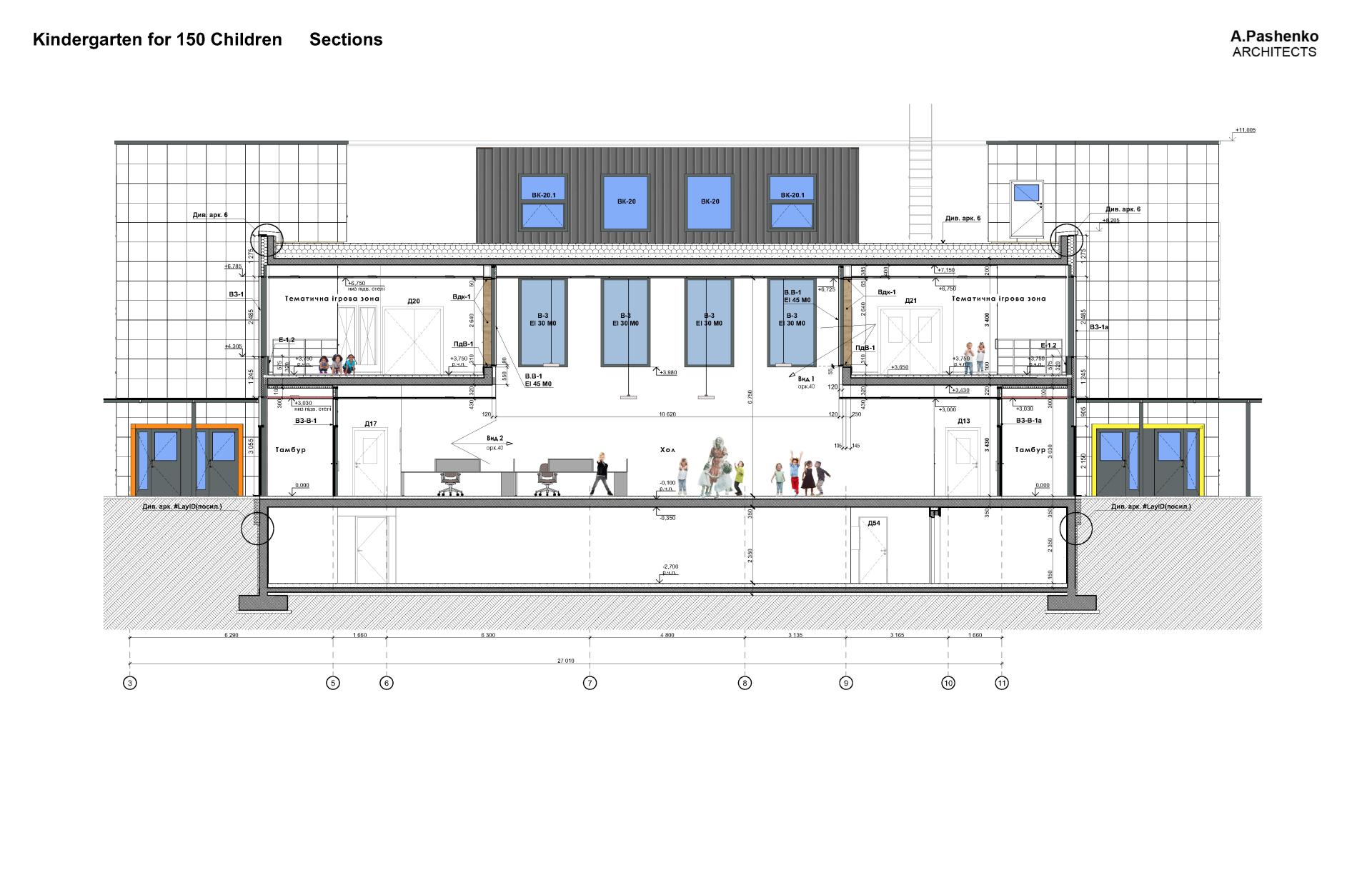 The submitted projects of social infrastructure harnessed the potential of participatory and transdisciplinary approaches. To design and implement the projects, the A.Pashenko brought together practitioners and knowledge from different fields and sectors with many diverse educational backgrounds. Our in-house team included architects, interior and landscape designers, masterplanners, and BIM and project managers. The team also subcontracted the following disciplines: the structural engineers to design, calculate and specify structural systems; the technologists to advise on functional planning, sizing and adjacencies of spaces, and specify the necessary for each accommodation equipment; the mechanical, electrical and plumbing (MEP) engineers to design, calculate and specify the heating, ventilation, cooling, fire suppression, electrical distribution, lighting, water supply and drainage, and building automation systems; the environmental, sustainability and energy consultants to make sure that the projects meet and exceed the sustainability and energy performance requirements, and also to prepare the Environmental Impact Assessments. We also consulted specialists in fire safety, transport, acoustics, civil defence, inclusivity and accessibility, security, kitchens for educational buildings, and others. The quantity surveyors who specialize in public procurement were engaged from the public sector because of the specificities of preparing the tender documentation for this project.