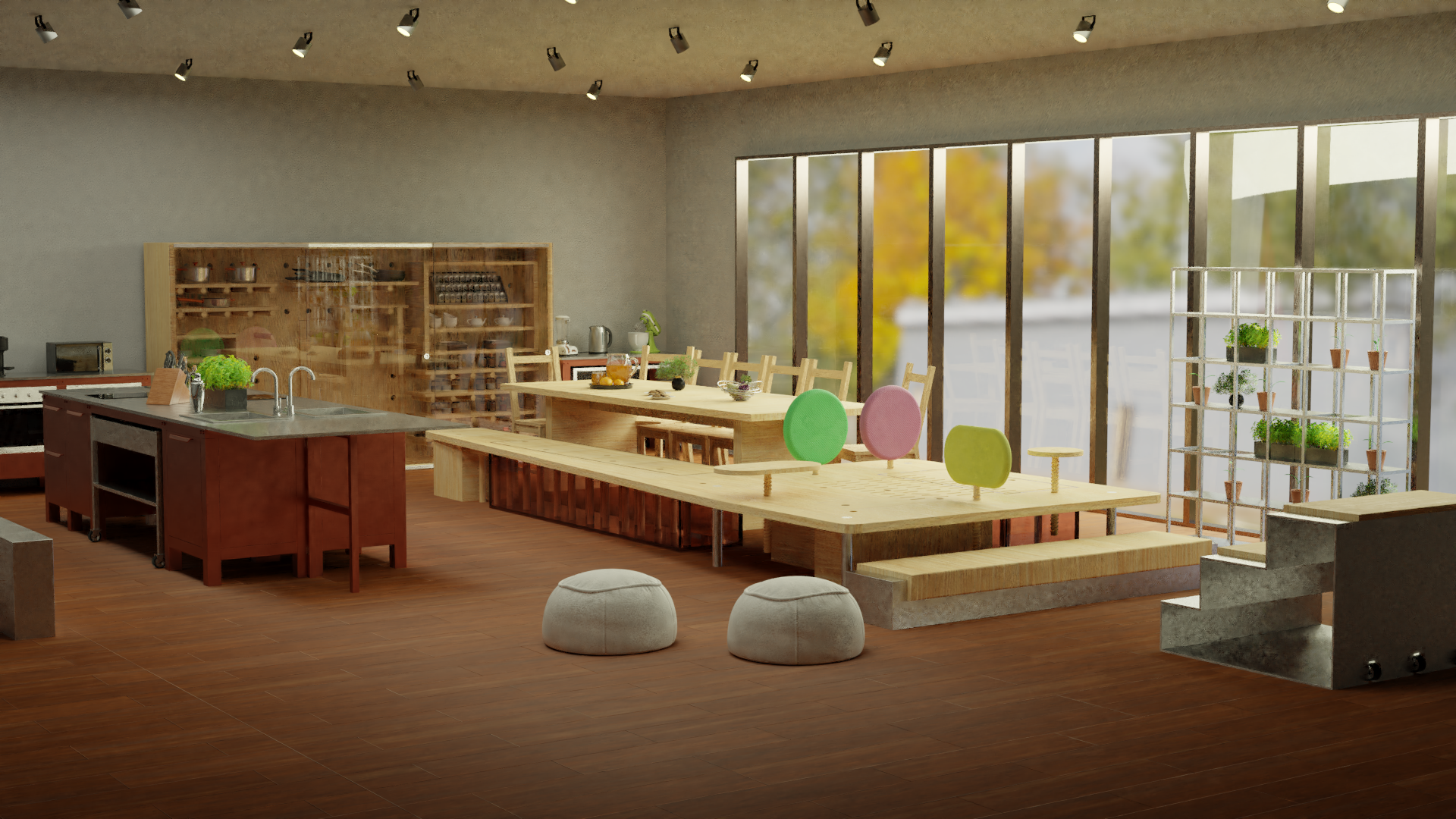 In the planning phase, the economic tools were essential to shape and validate each concept element; in particular, the Benchmarking Analysis is the tool to evaluate the project feasibility and insert it into the real world. To better manage the total scope of the project, the WBS (Work Breakdown Structure) is structured using a top-down approach: each defined phase was broken down into Work Packages to obtain greater project management detail. In addition, for designing the Kitchen Space, the Product Design discipline plays a crucial role in studying materials and shapes. The design of objects complies with the formula "The form follows the function".