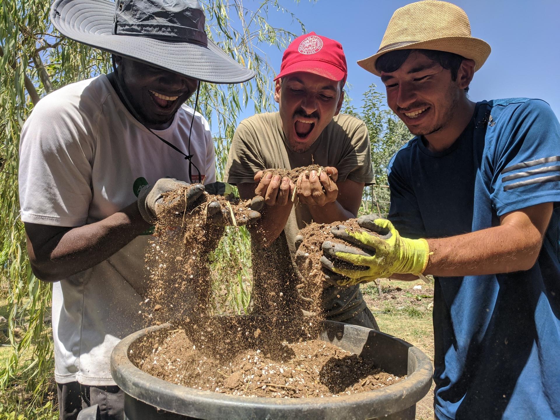 We train refugees to be permaculture teachers. We regularly provide consultations to organizations on a variety of topics, from upcycling to garden and permaculture design to program structure, assisting with work on site when feasible. We support sustainable agriculture courses for refugees and the design and building of gardens in Malawi and Syria.