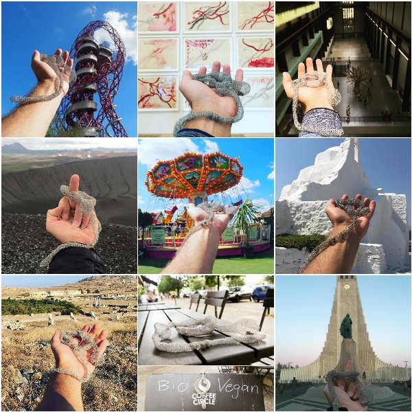 Most of the participants chose Photography as their medium of expression, but not all of them were wearing the jewelry in the photos. I find this especially beautiful since some participants view the jewelry as their daily companion (to go to the office, travel, hang out for a drink, socialize...) so they took pictures of these objects to show the surroundings. The Wanderers even hiked through Iceland, visited art galleries, attended family gatherings.