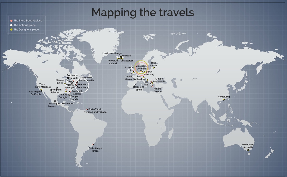 The Wanderers visited around 40 applicants from 20 countries including Latvia, Germany, USA, Brazil, Mexico, Spain, Iceland, UK, Thailand, Switzerland, etc. Some of the pieces even changed countries several times while staying with one host, such as the Store-bought one that even though was suppose to be in Maryland, traveled to Panama and Caribbean for a 10 day vacation with the host for the carnivals.