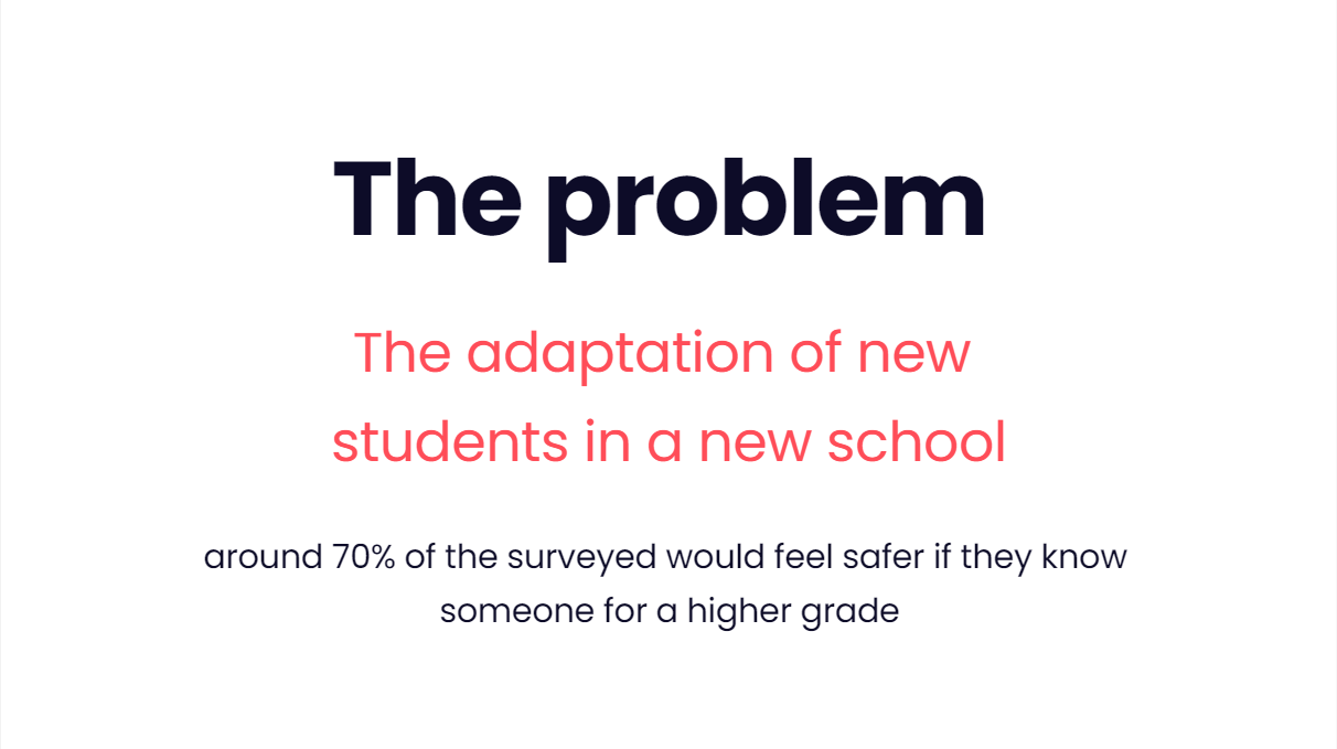 Nowadays, students find it more and more difficult to make friends and feel more anxious when they are in a new environment. My idea solves these problems and in addition improves the education of students and succeeds in preparing them for their life.
