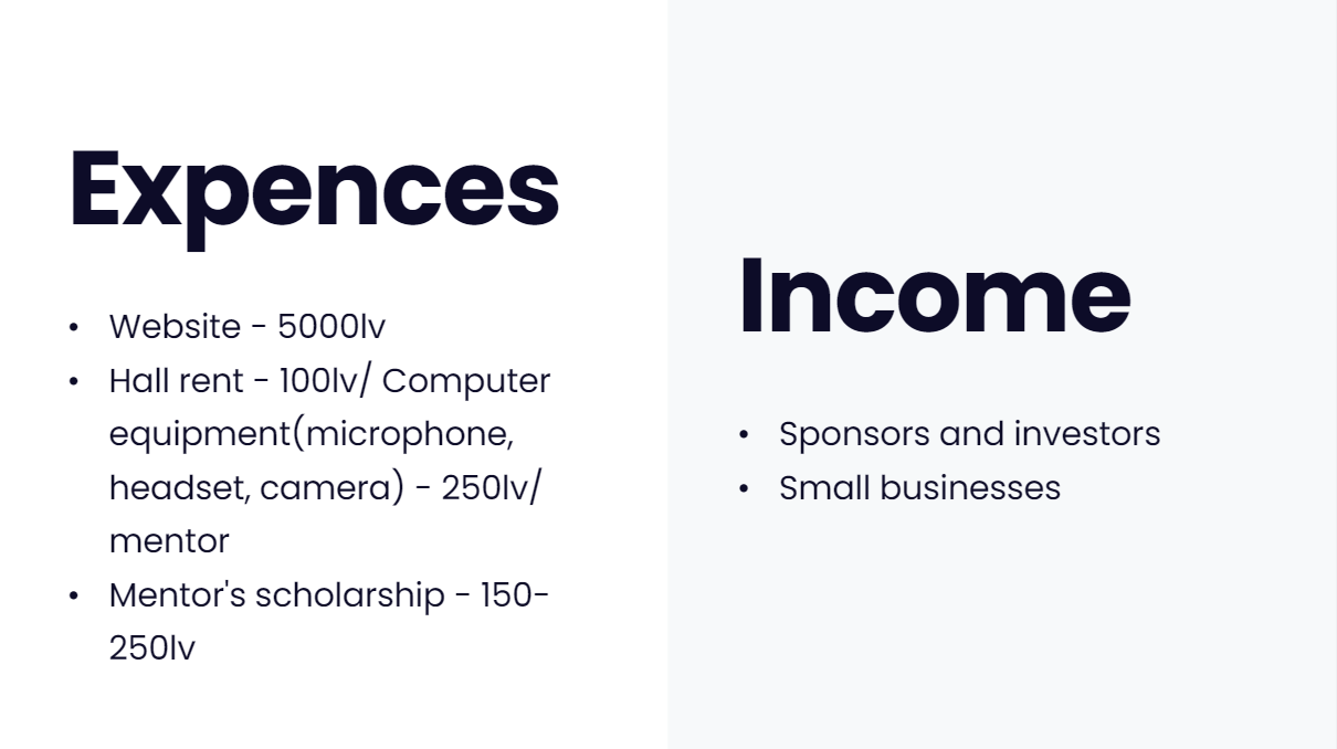In my idea everyone wins. The mentors will be getting a scholarship form our sponsors and a certificate for participation, the new students will get help with their material and the most important thing is that they will understand what each teacher requires and how to prepare better for their class thanks to their mentor's experience. The sponsors and the investors will earn money form the subscriptions and will be able to find unique interns, they will be able to self-promote with the fact that support the Bulgarian education and we will post their logos on our website and social media. Teachers will benefit from the fact that students will be doing much better and schools will gain prestige and new applicants.