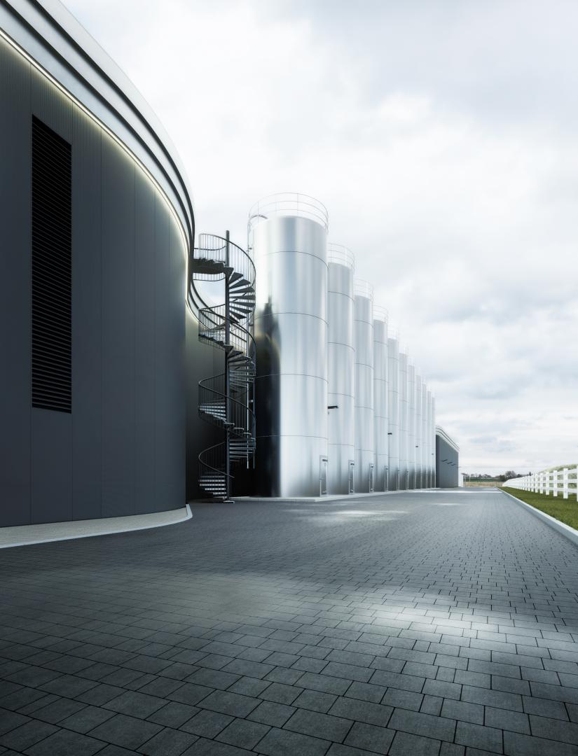 Plastic bottles will soon have to be made of 25% recycled material, and from 2030 a minimum of 30%. This was the case with the newly designed production site, which we had to take into account at the design stage. We ended up incorporating a nearby cornfield into the master plan, which turned out to be an excellent source of the bio-additive component. The use of locally available biomaterial, which may possibly replace inorganic components, should become a new standard.