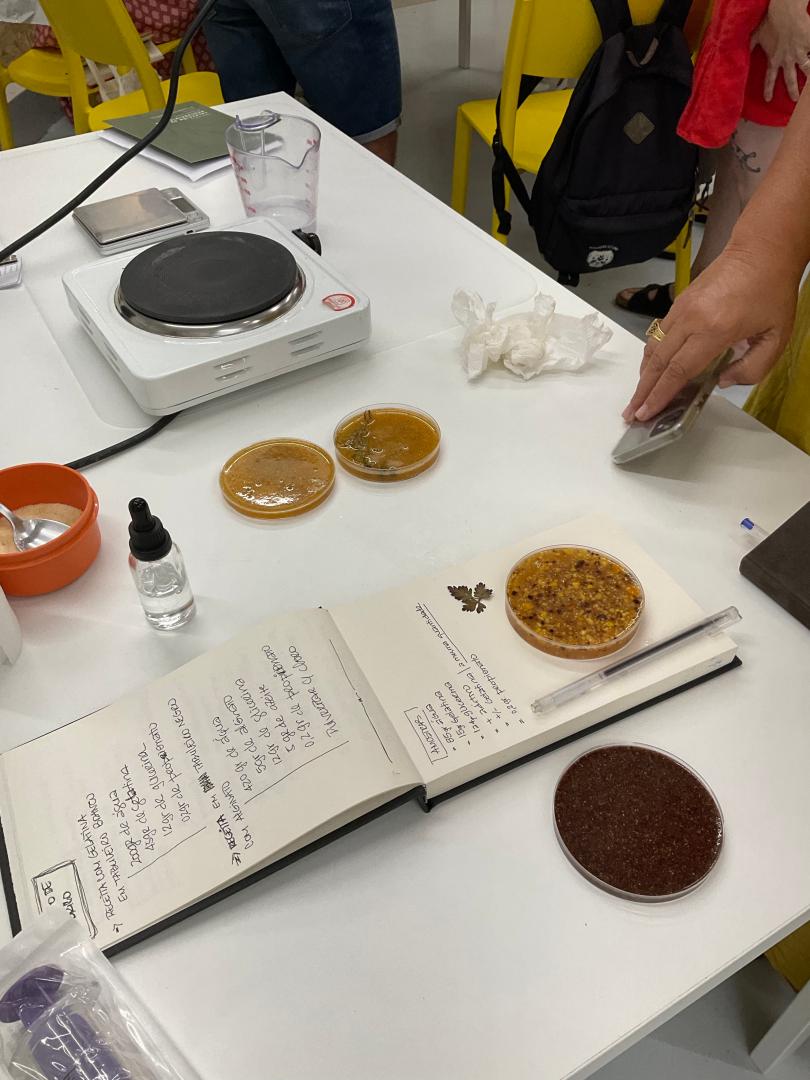 The course scheduled for the first week consists of learning biomaterial manufacturing techniques, natural dyes, and folding techniques, in a low-tech way, based on how Nature manufactures its materials, generates structures, and produces color.