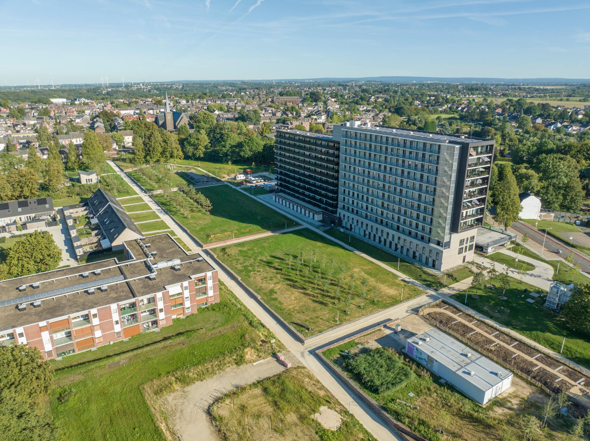 In addition, a Neighborhood Steering Platform (Hereafter: NSP) was established in 2017, consisting of local residents, former residents and future residents. This NSP met every six weeks to discuss and think about the design of the project area. This together with the municipality of Kerkrade and HEEMwonen. The approach is that those involved think about the design of various functions in the buildings and in the public space. The big advantage is that people become actively involved in designing their own living environment. For example, it has been decided that no cars are allowed in the public space of the project area. Cars can be parked on a circular parking deck, next to the high rise building. A multifunctional outdoor meeting space has also been designed by the NSP that can be used.