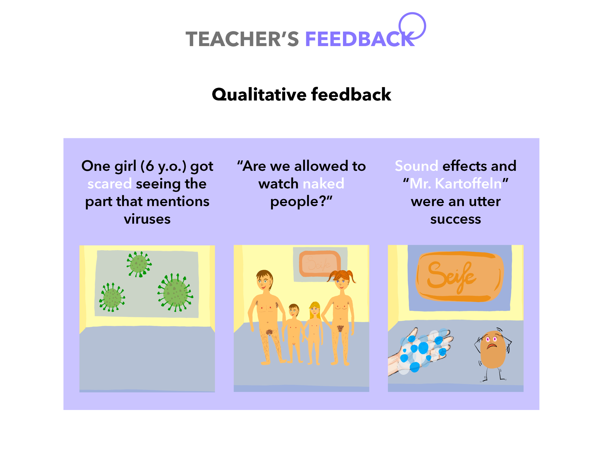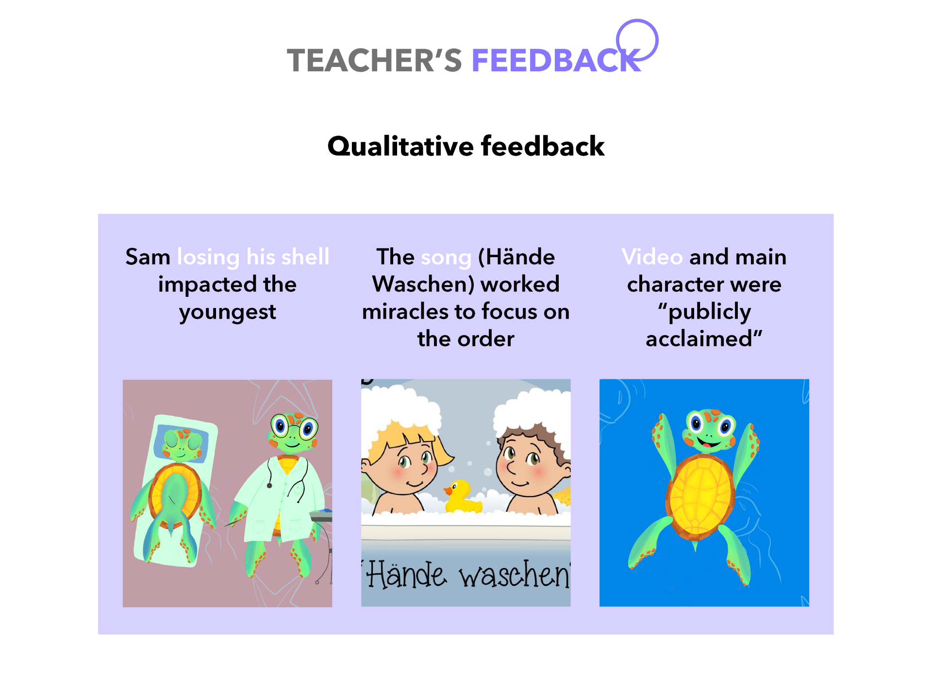 Nevertheless, as was mentioned before this project counted with the collaboration with a real primary teacher in Bremen, who allowed this prototypes to be tested with over 100 kids from ages 5 to 9. The results were very positive, and even the head or principal of the school in which it was tested pointed out the great work and will now prepare an introduction to the parents and families in the next official meeting.