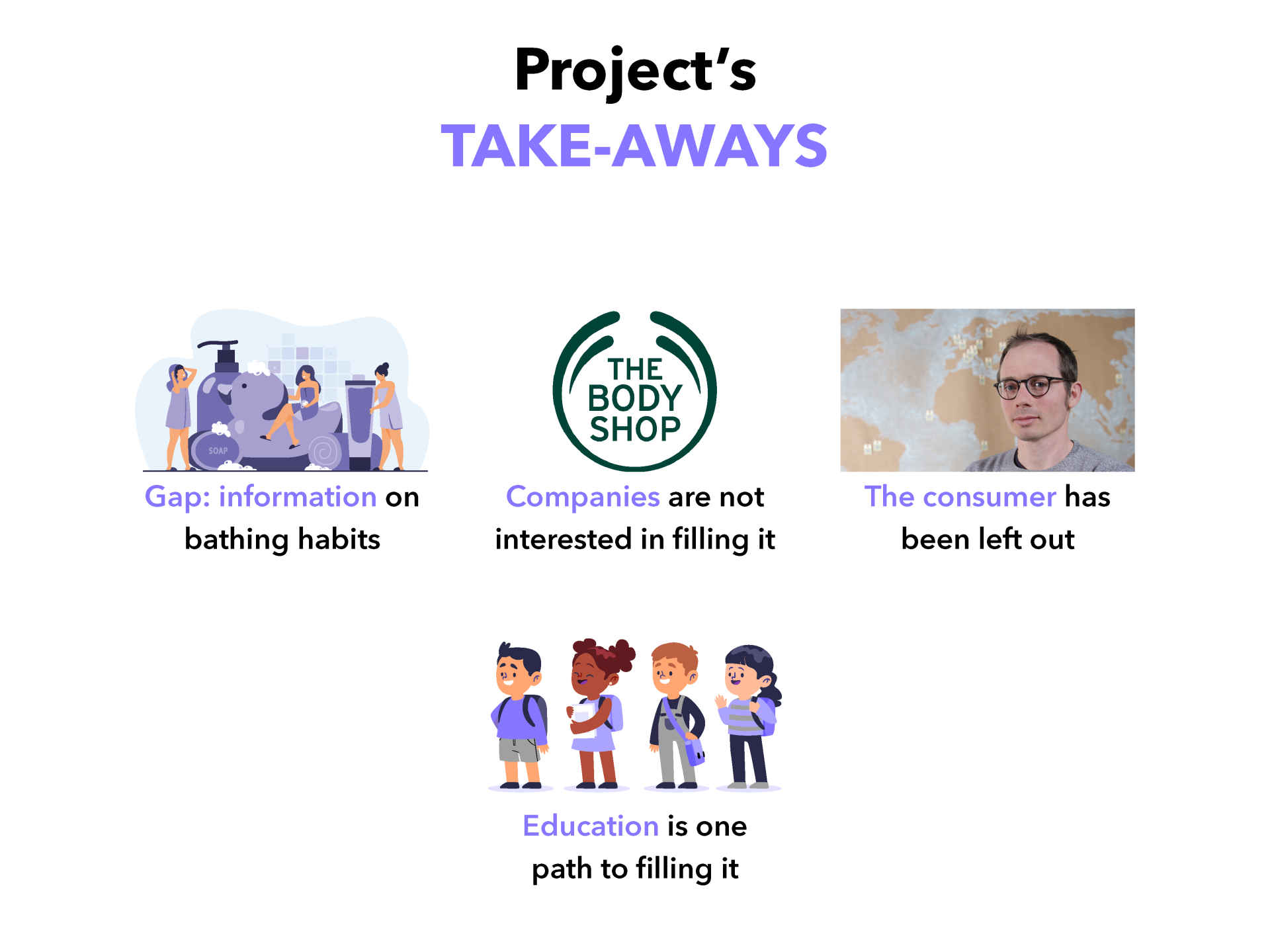 After conducting a long research, I found out that there was a gap when it came to education on basic hygiene habits. Not being taught this in the school leaves us unprotected in a world ruled by the media and advertisement, making us vulnerable when making purchasing decisions.