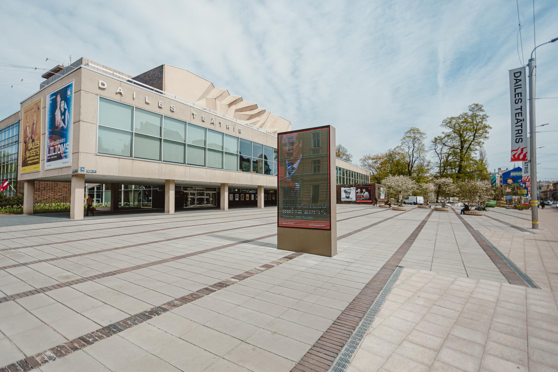 From a previously degraded environment the space has changed drastically, and the square now is a new and modern element of Riga’s urban environment, a place to spend an enjoyable time next to Dailes Theatre.