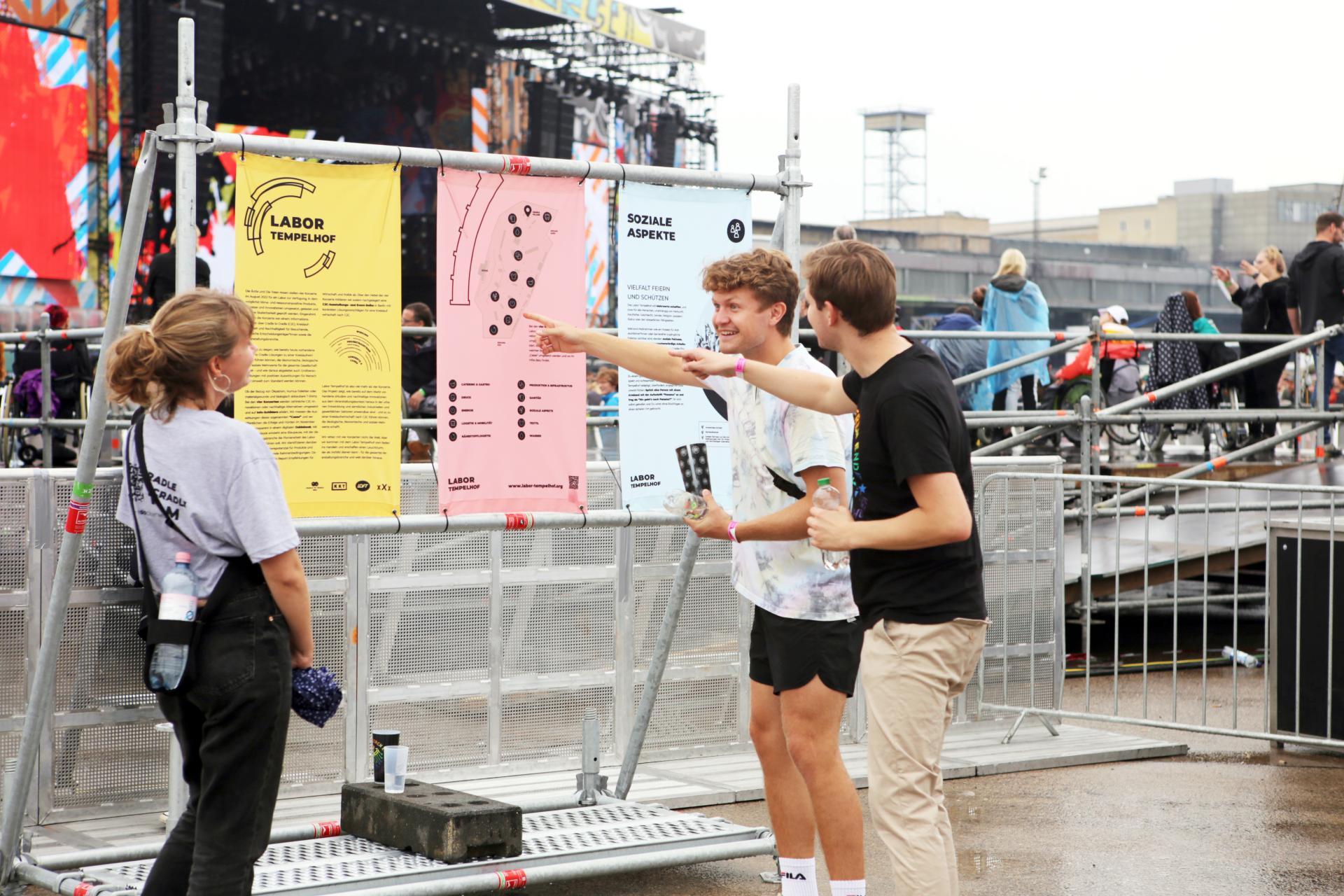 The knowledge and results from Tempelhof Laboratory are intended for everyone organizing and making events possible as well as those who attend. To accurately depict real-life circumstances, multiple stakeholders were involved at different points in the process: from stage construction, artists and their management, merchandise producers, catering, technical suppliers, mobility providers, logistics services, sanitary facilities, energy providers and many more.