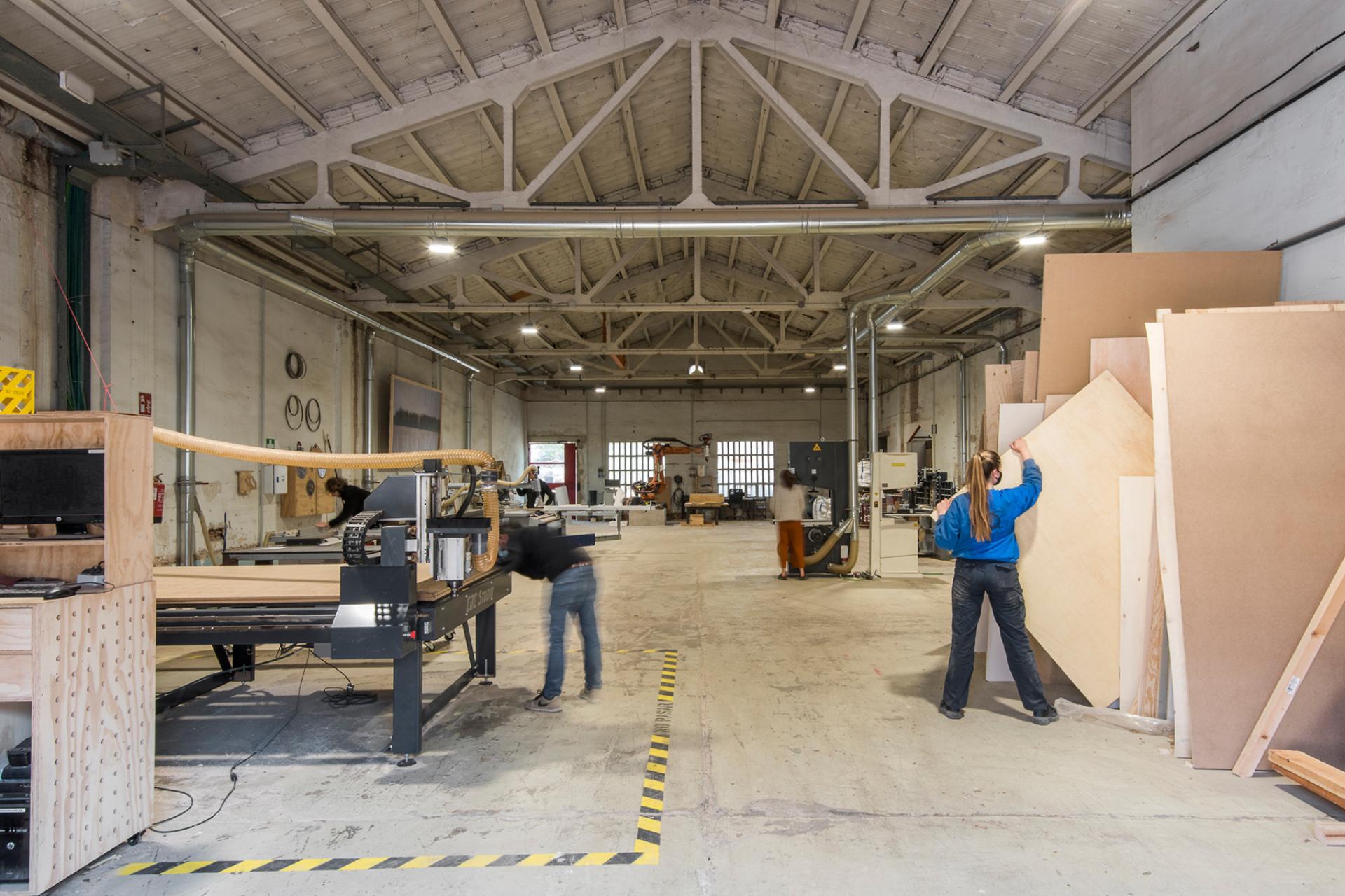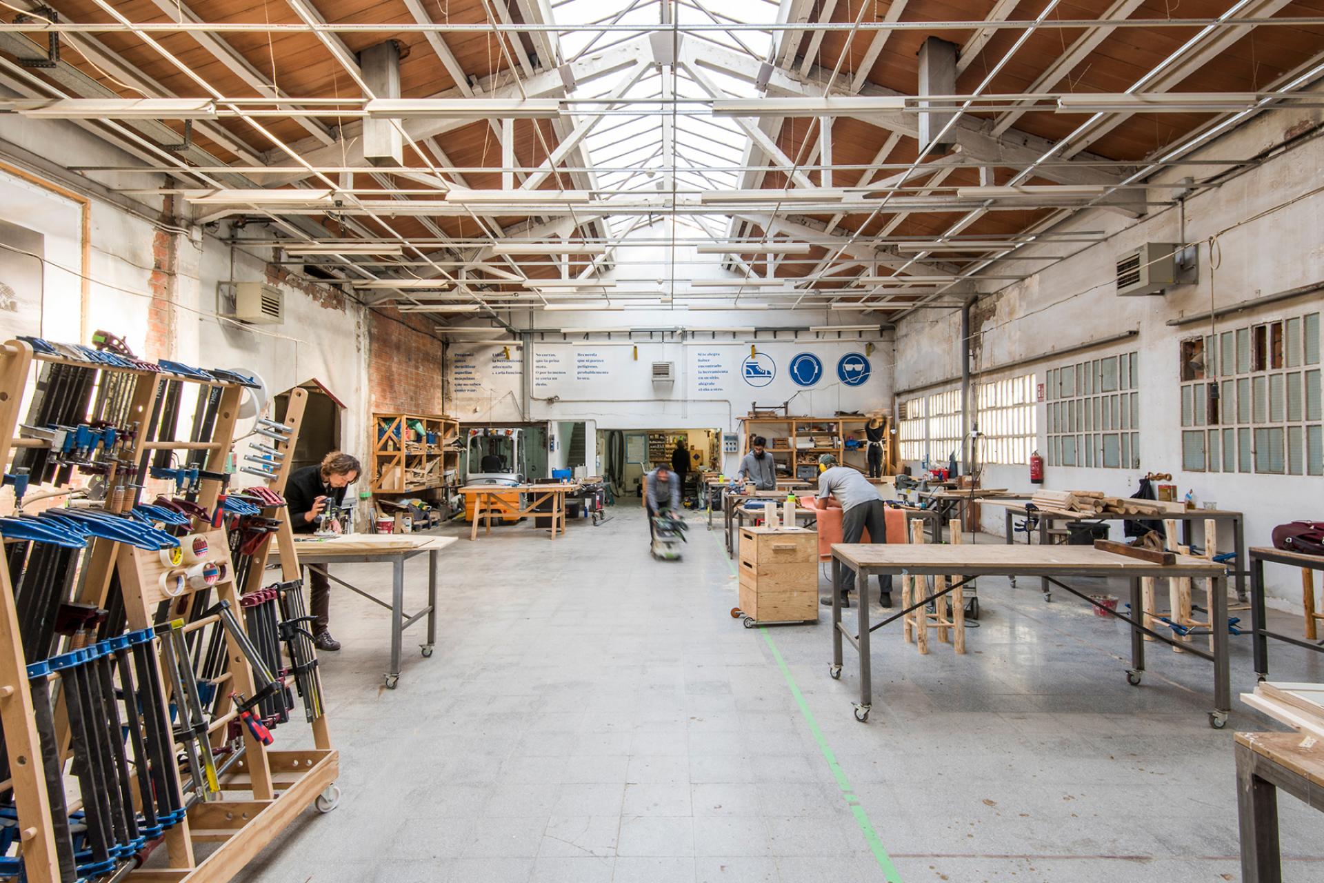 4500m2 open workshop in the city of Barcelona to work wood, metal, plástics, electronics, concrete or glass.