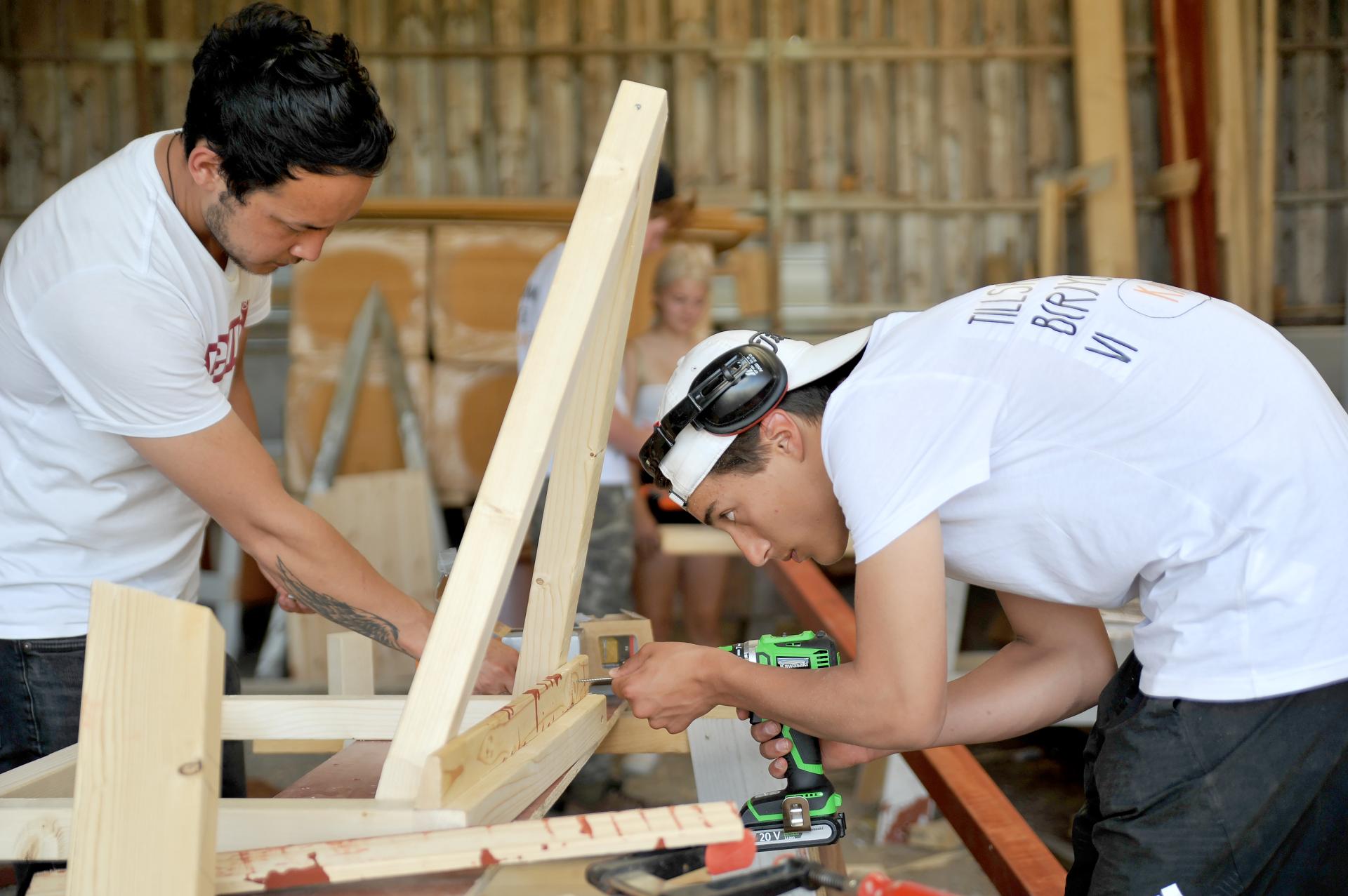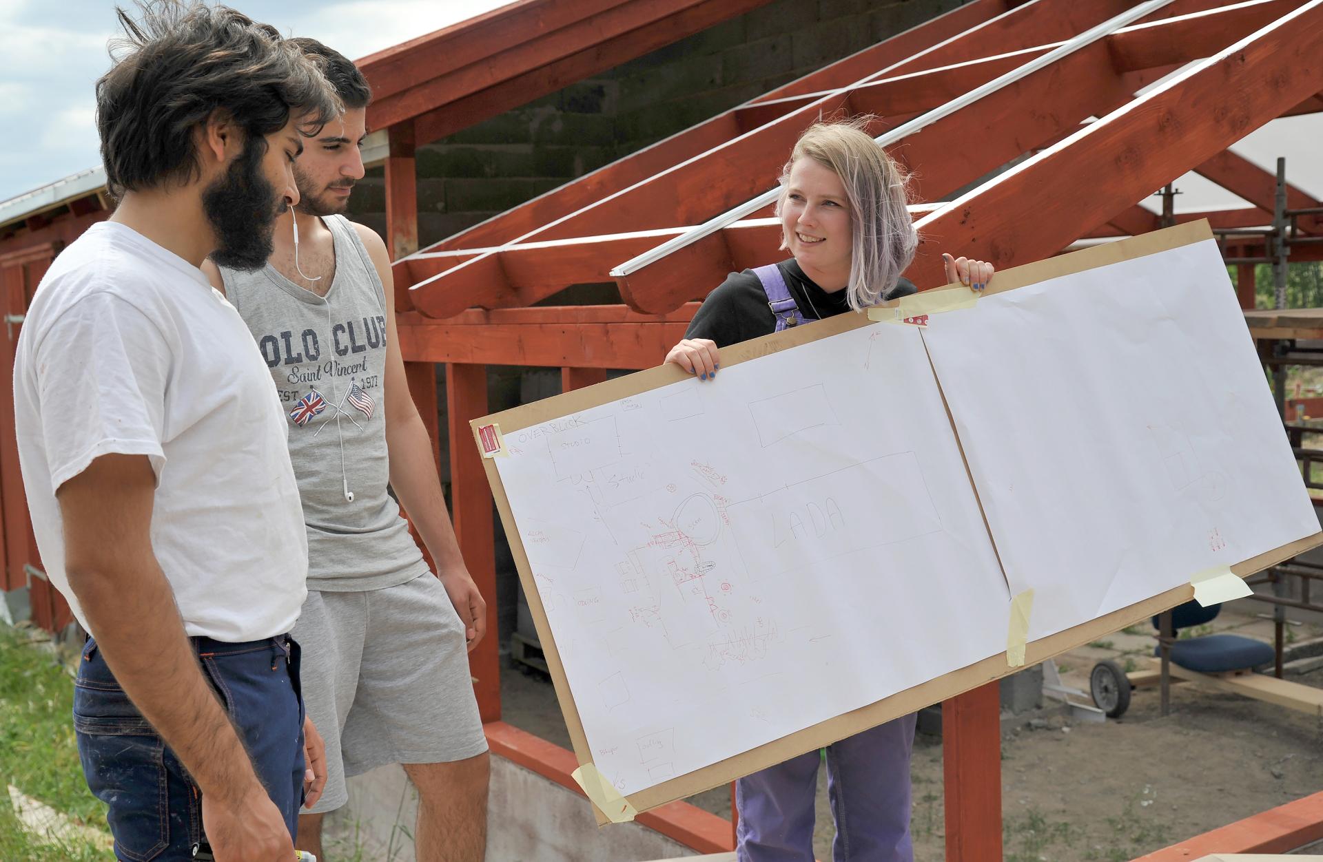* INTEGRATION. In the early summer camp with youngsters we have mixed young immigrants and locals, and after just a week of co-building we have seen how they cooperate without any problems, even if they don´t speak the same language. Something connects you to each other when you physically build together. People become friends when they must solve practical tasks. In our method we call it "integration by creativity."
