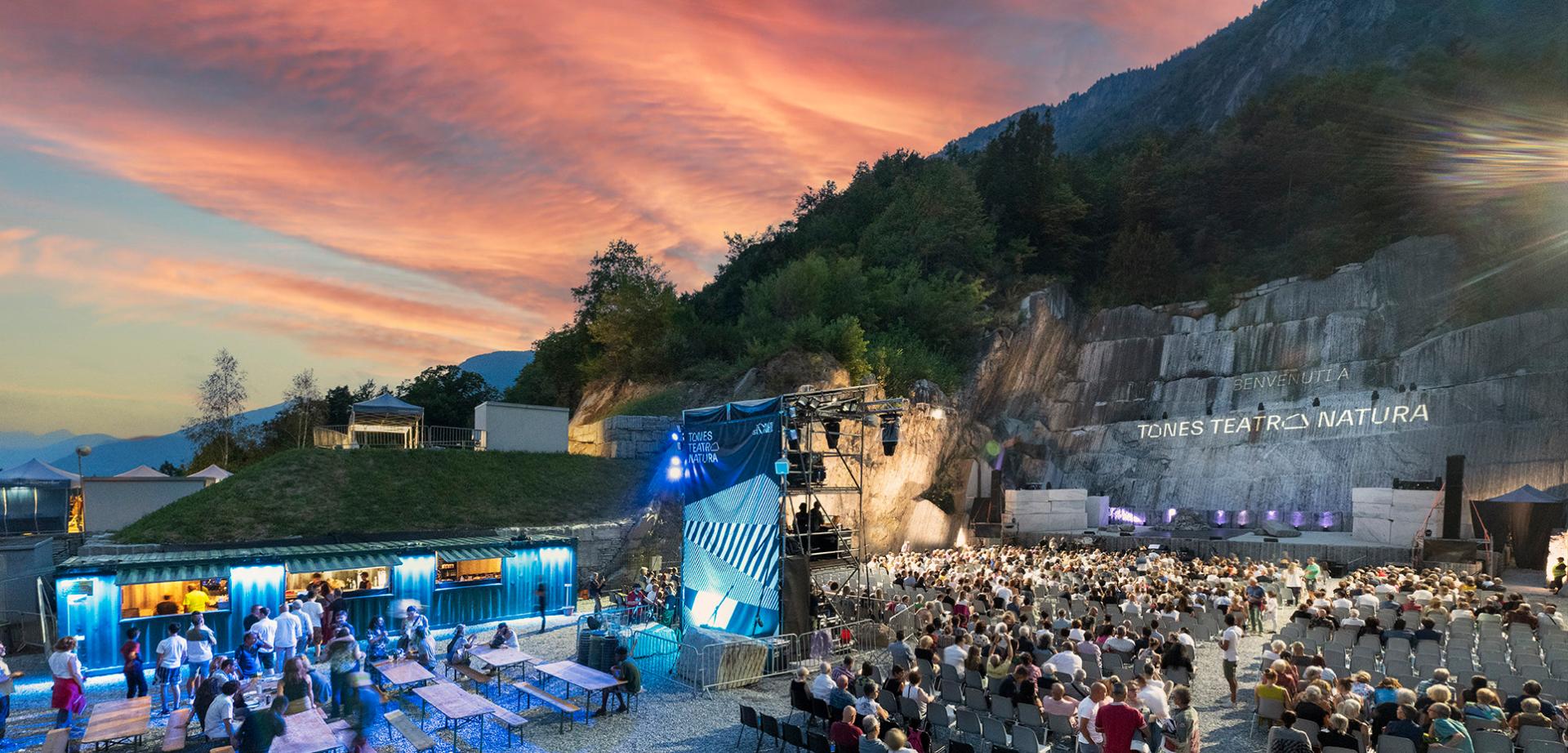 In 2019, Tones on the Stones, a non-profit foundation, acquired an abandoned quarry committing to its redevelopment, turning a site doomed to be a landfill into Tones Teatro Natura, a theater amidst woods, pastures, and mountain gardens, dedicated to innovation, performing arts, well-being, and educational activities.
