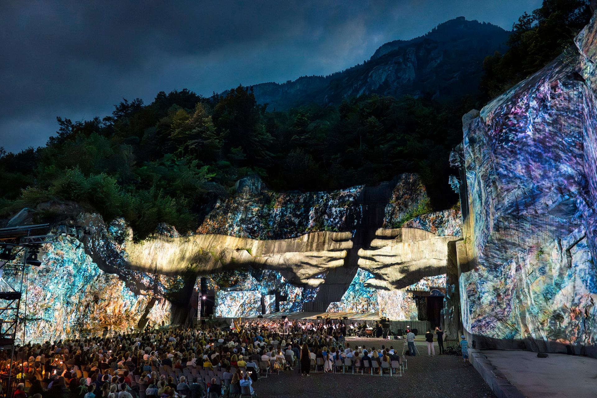 An abandoned quarry at the feet of the Alps is given a new life becoming a natural theater