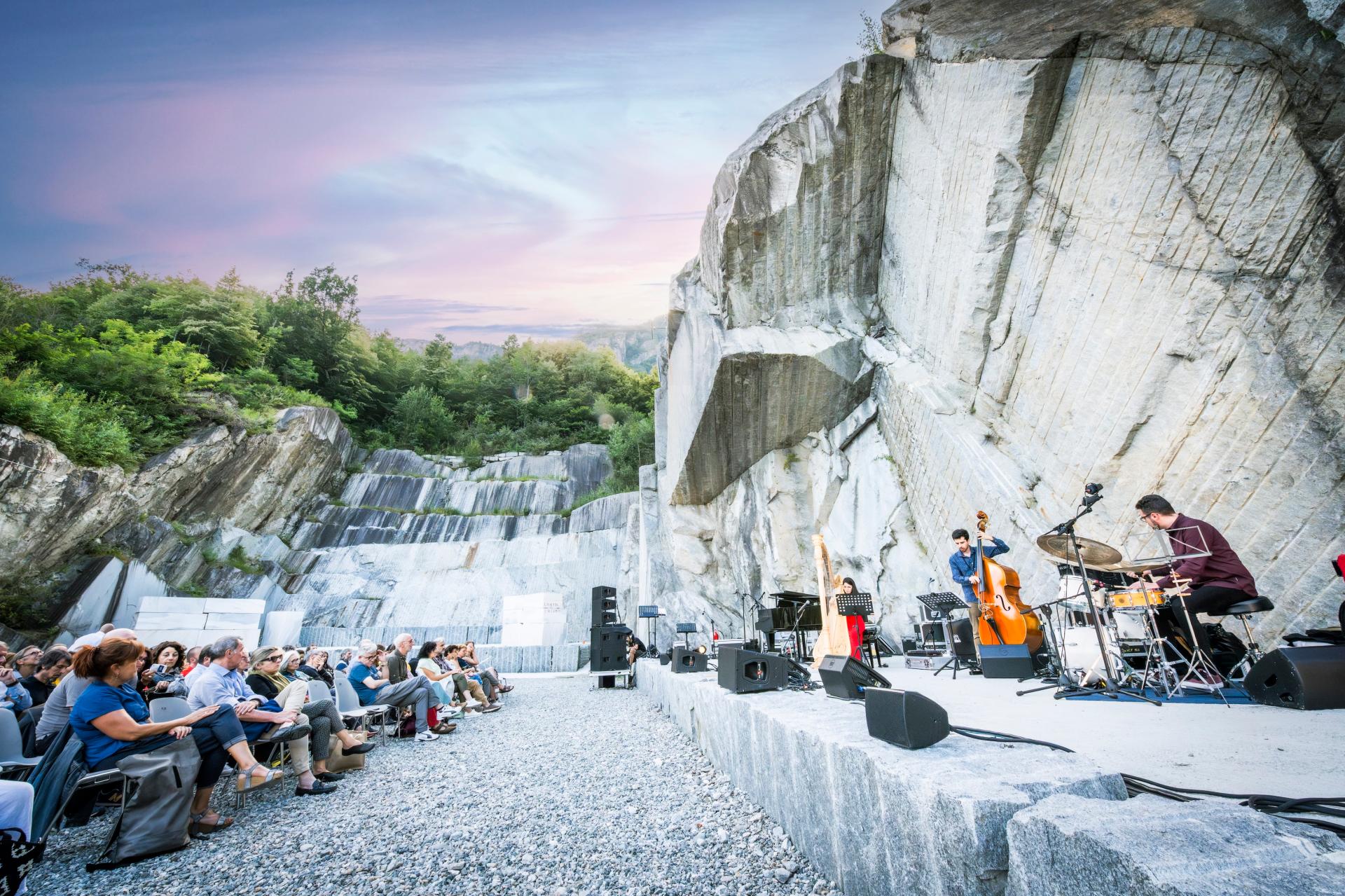 In 2019, Tones on the Stones, a non-profit foundation, acquired an abandoned quarry committing to its redevelopment, turning a site doomed to be a landfill into Tones Teatro Natura (TTN), a theatre amidst woods, pastures, and mountain gardens, dedicated to innovation, performing arts, well-being, and educational activities.