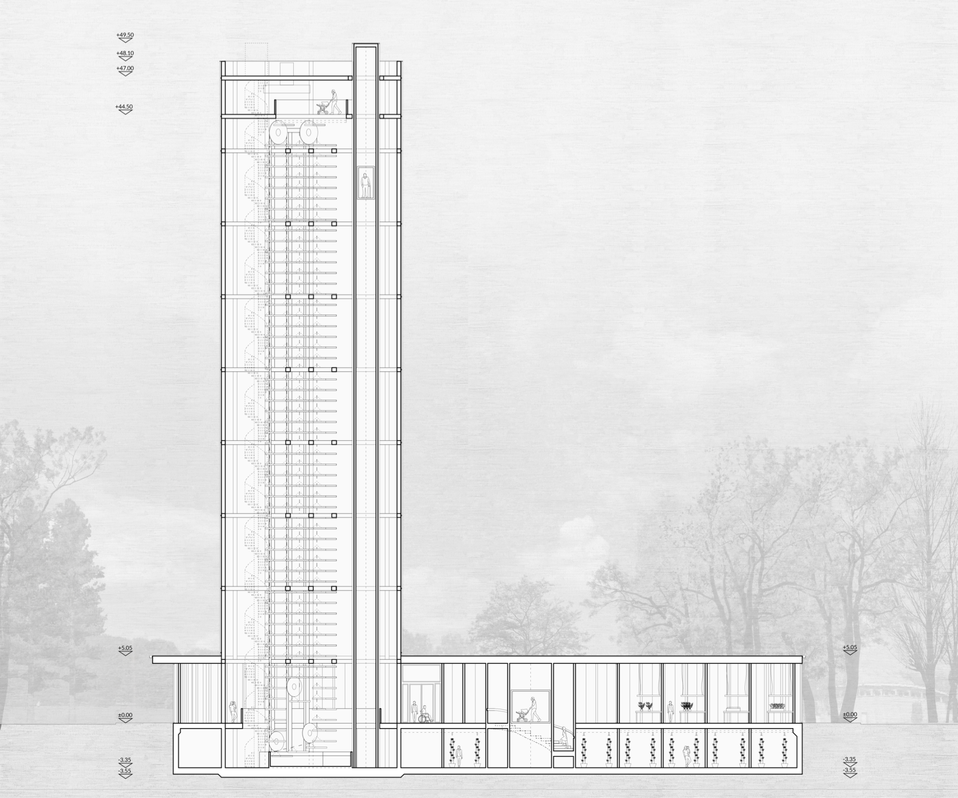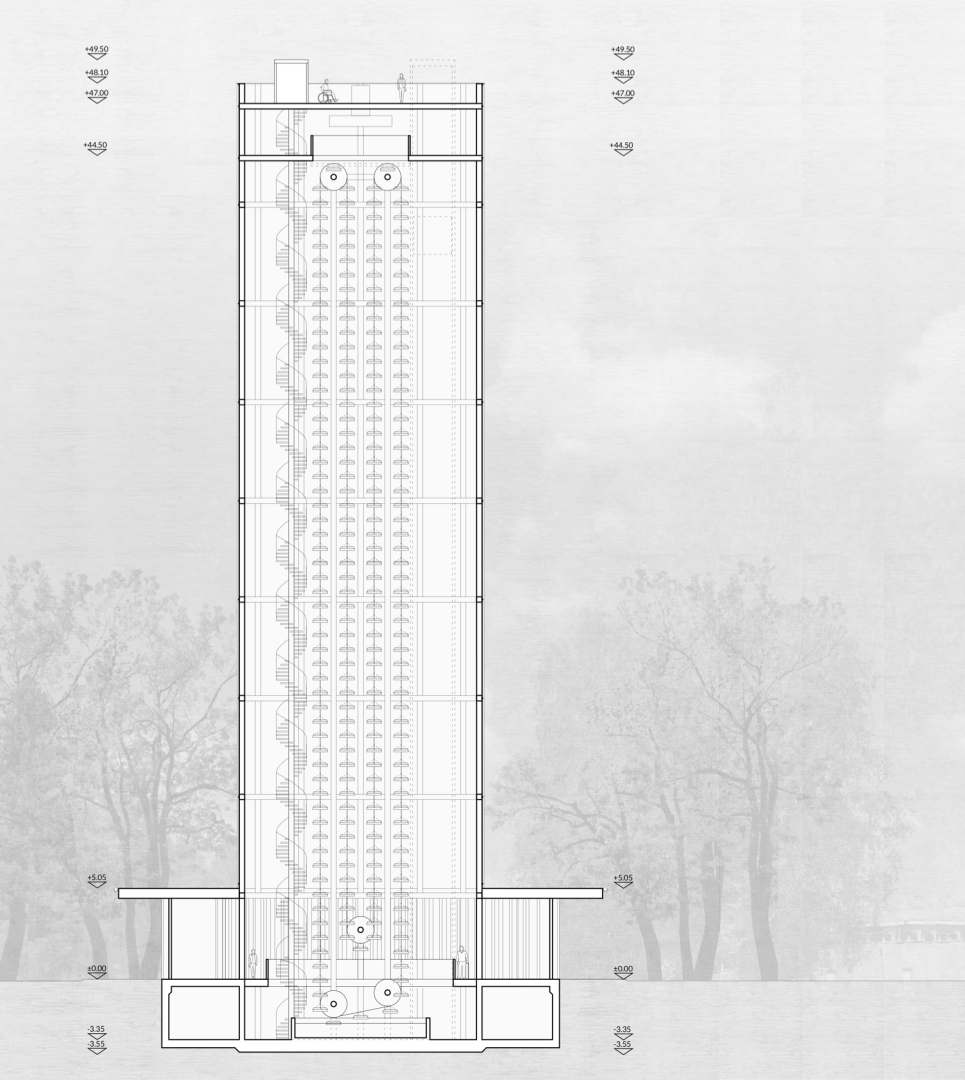 The Silesian Park is a relict of the communist era, but despite its propaganda character, the park turned out to be a success. However, this place known for its innovative spirit has fallen into neglect. The concept is a strategy for the whole park and as an architectural intervention creates a design that would enliven the space, by the restoration of the Greenhouse Tower - a vertical farming structure in the new garden area, a place that combines education, cultivation and social interactions.