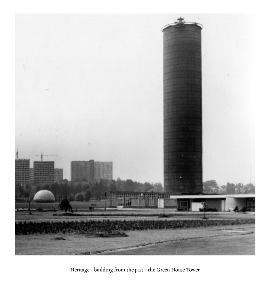 The aim was to return to the roots and restore the tradition of this area as an innovative and education-oriented place. The selected area is a former place of National Horticultural Exhibitions. The pretext for this choice was the discovery of a building that had disappeared forty years ago - the Greenhouse Tower which was an experimental plant cultivation carried out using the hydroponic method. It was built in the 1960s and was, at that time, the tallest greenhouse in the world and the first example of vertical cultivation in Poland.