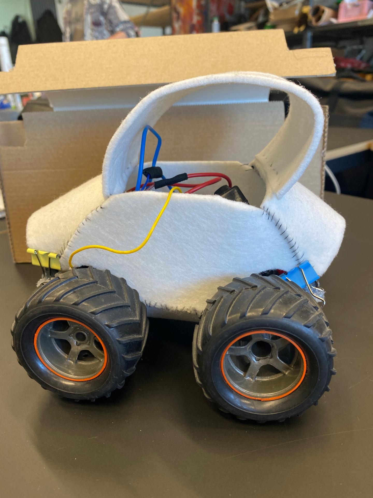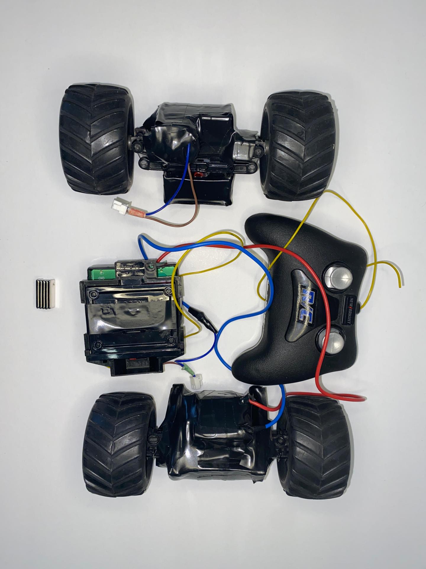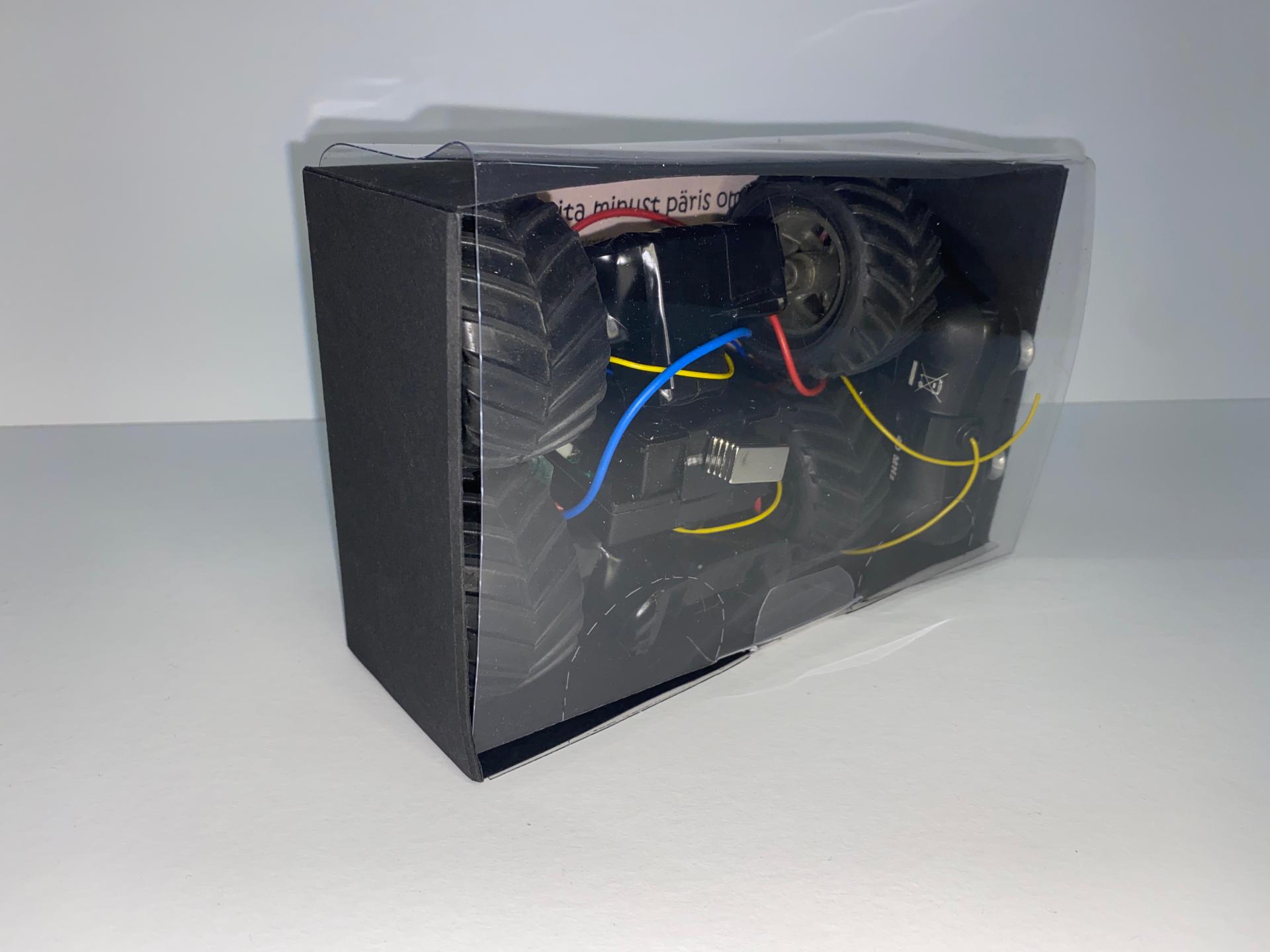 It is a remote control toy car building kit for children. The kit provides user with 4 wheels, a battery, magnets and a remote control. All the user has to to is to find a material to build the body of the car and fix it to the wheels using magnets provided in the kit. The idea of the concept is that it would replace the need to buy several toy cars with different looks. Instead, you can buy this one kit and reconstruct it when you feel like it. This kind of building develops children' s creativity, constructional thinking and provokes free play which is an important part of childhood.