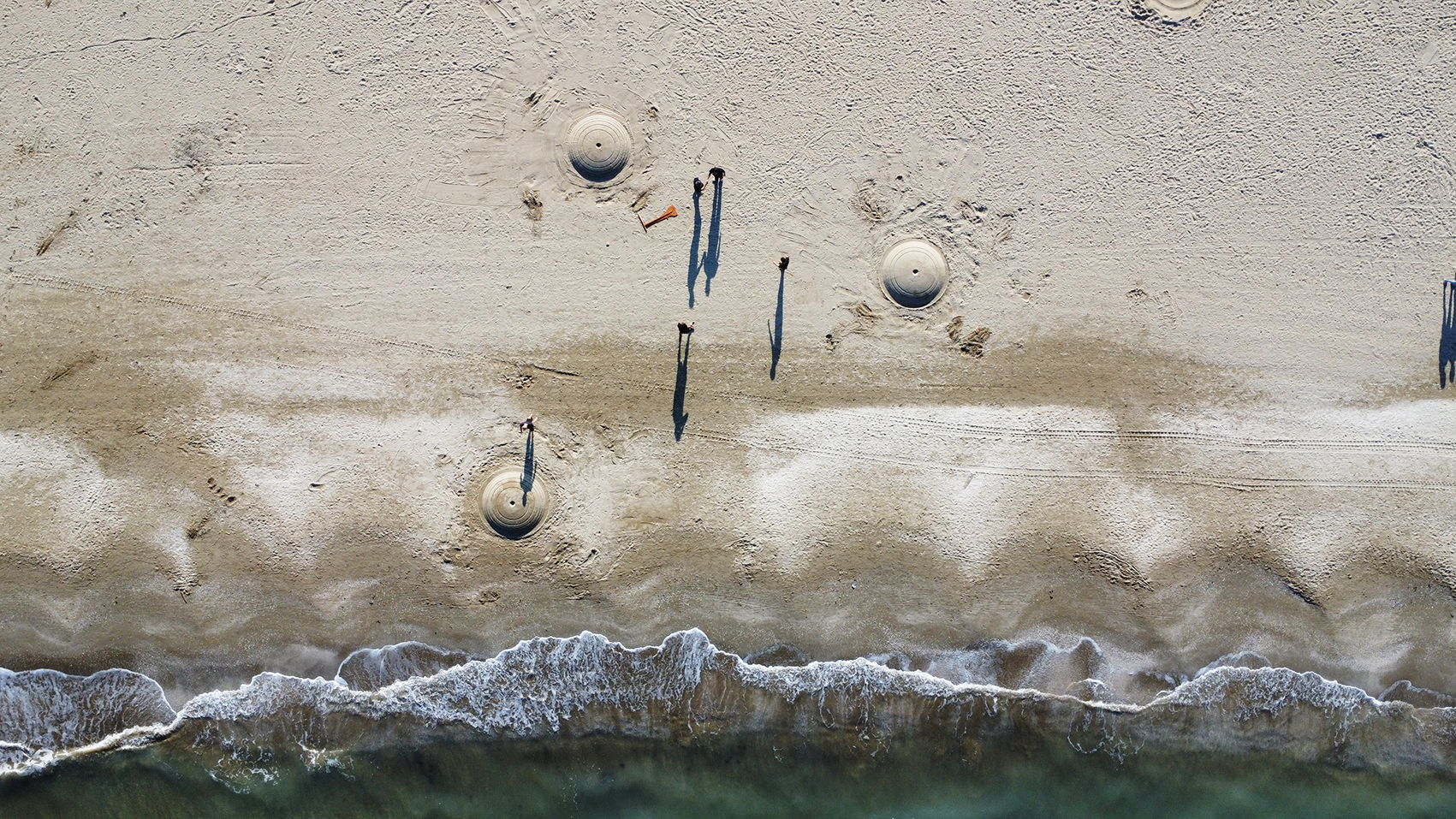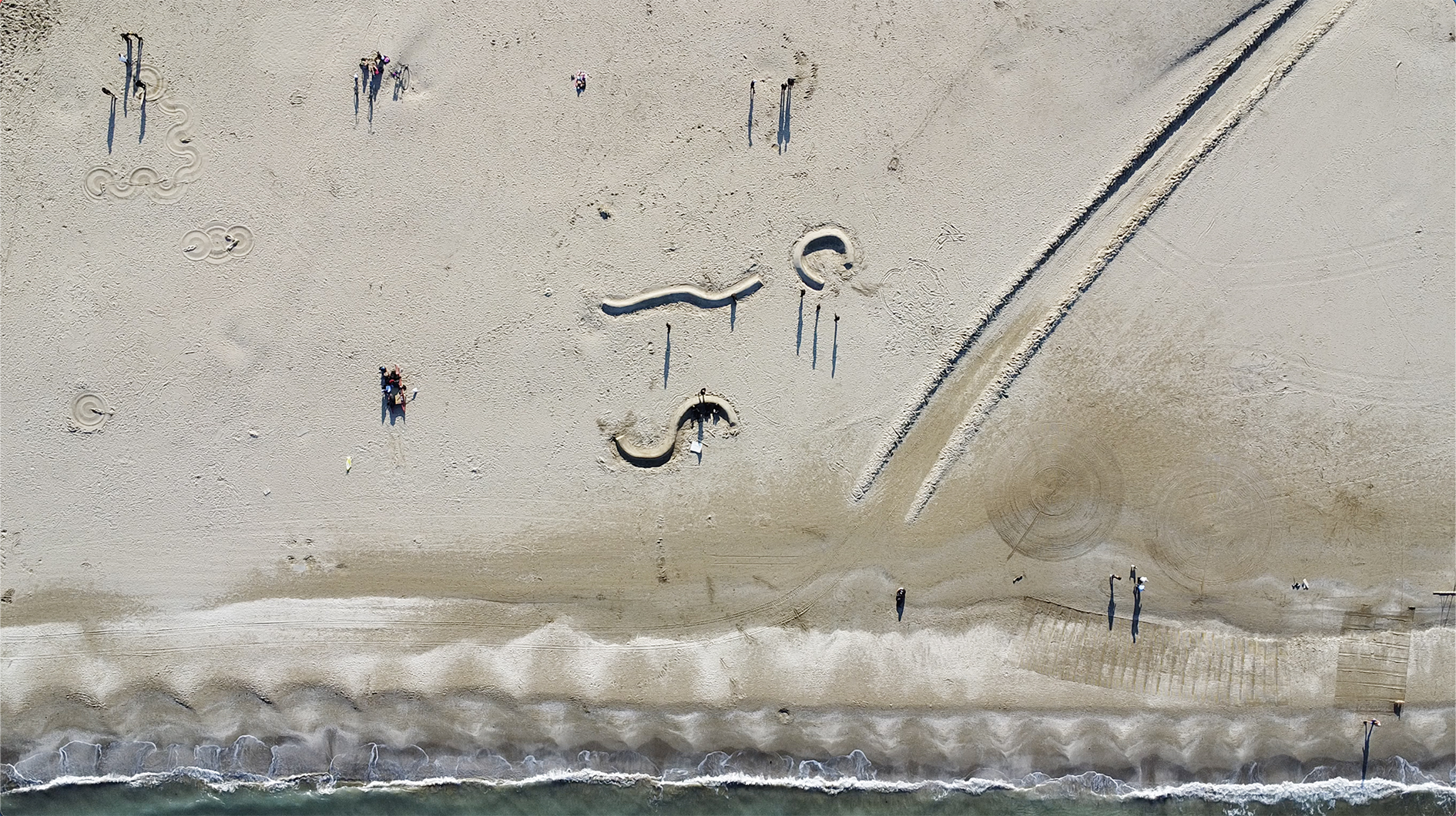 The aesthetics of the interventions, on a large scale and not an end in itself, participate in identifying areas of the beach characterized by temporary interventions. Shapes designed to visualize the trajectory and power of the winds, the motion of the sea or the movement of the waves.