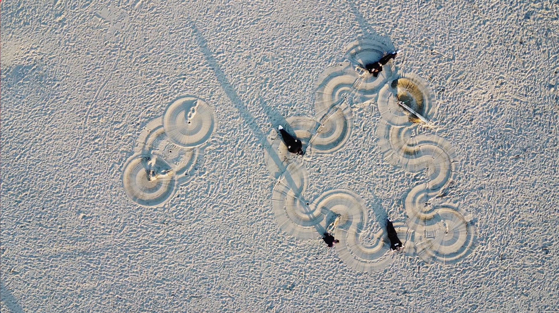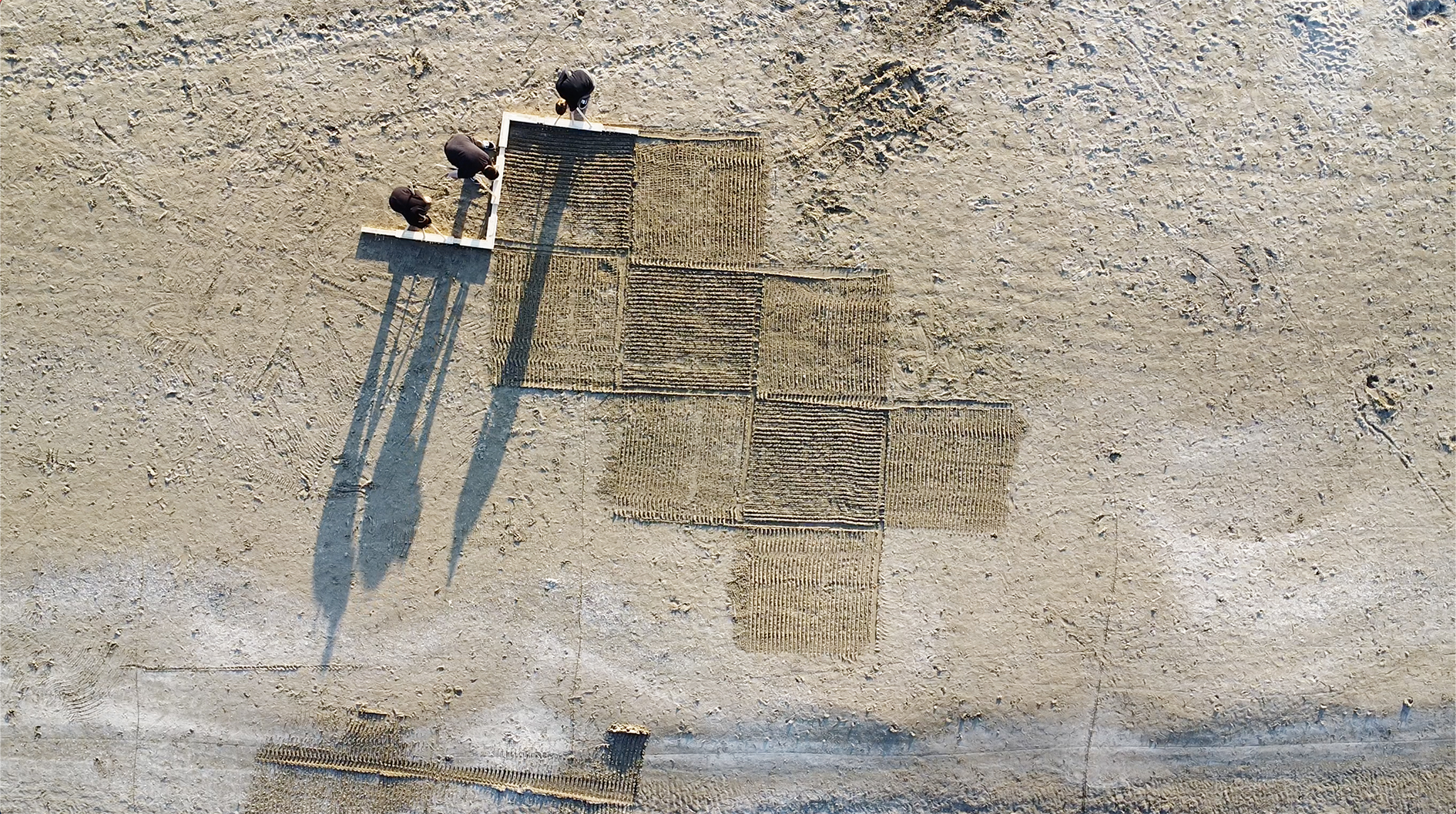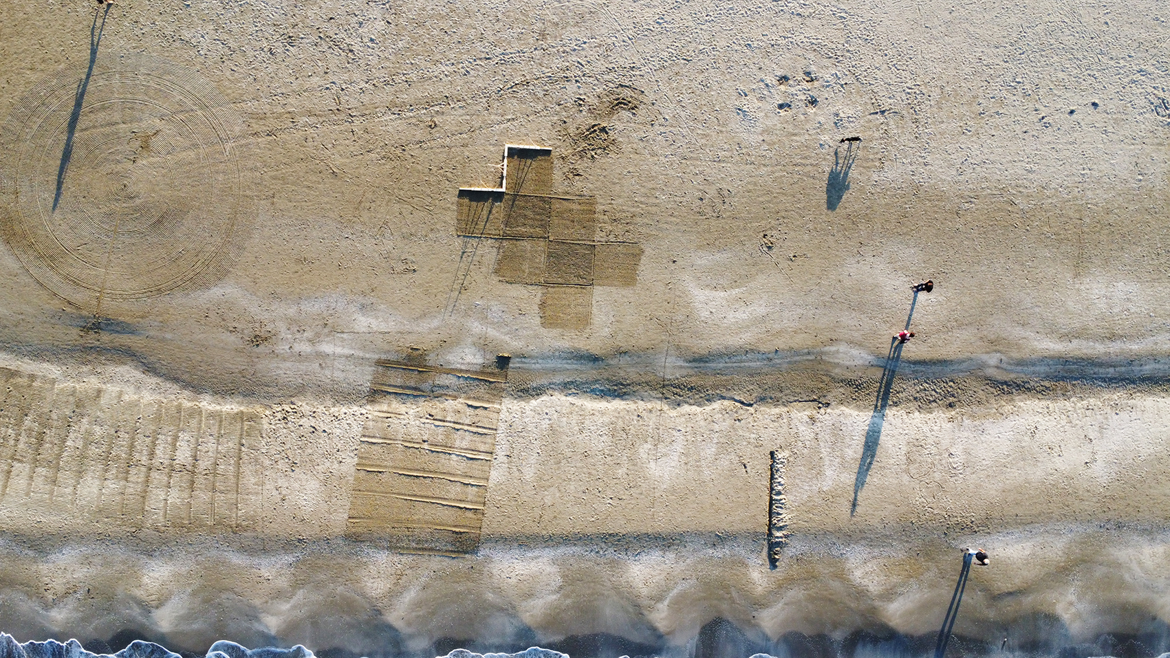 Traces designed to describe the behaviour of nature and man, meant to be erased by the wind and the sea and, as they are consumed, to explain their meaning.