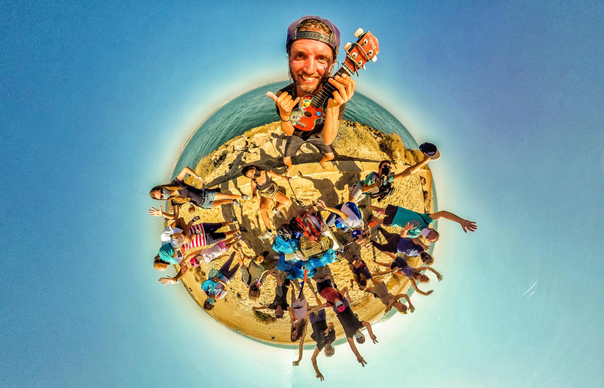 Andreas Noe is always carrying his Ukulele with which he is creating awareness songs about several environmental issues and always singing with the clean up group to make it more engaging and fun to take part in the actions. All Ukulele songs are short and simple, so that the message gets stuck into people's minds with a little smile. Every clean up ends with a creative video with joy together with the community. Songs and videos are created in collaboration with the clean up group depending on the engagement of the people. This connects people even more to the action and remembers. Always keeping in mind to raise awareness with positivity and joy.
