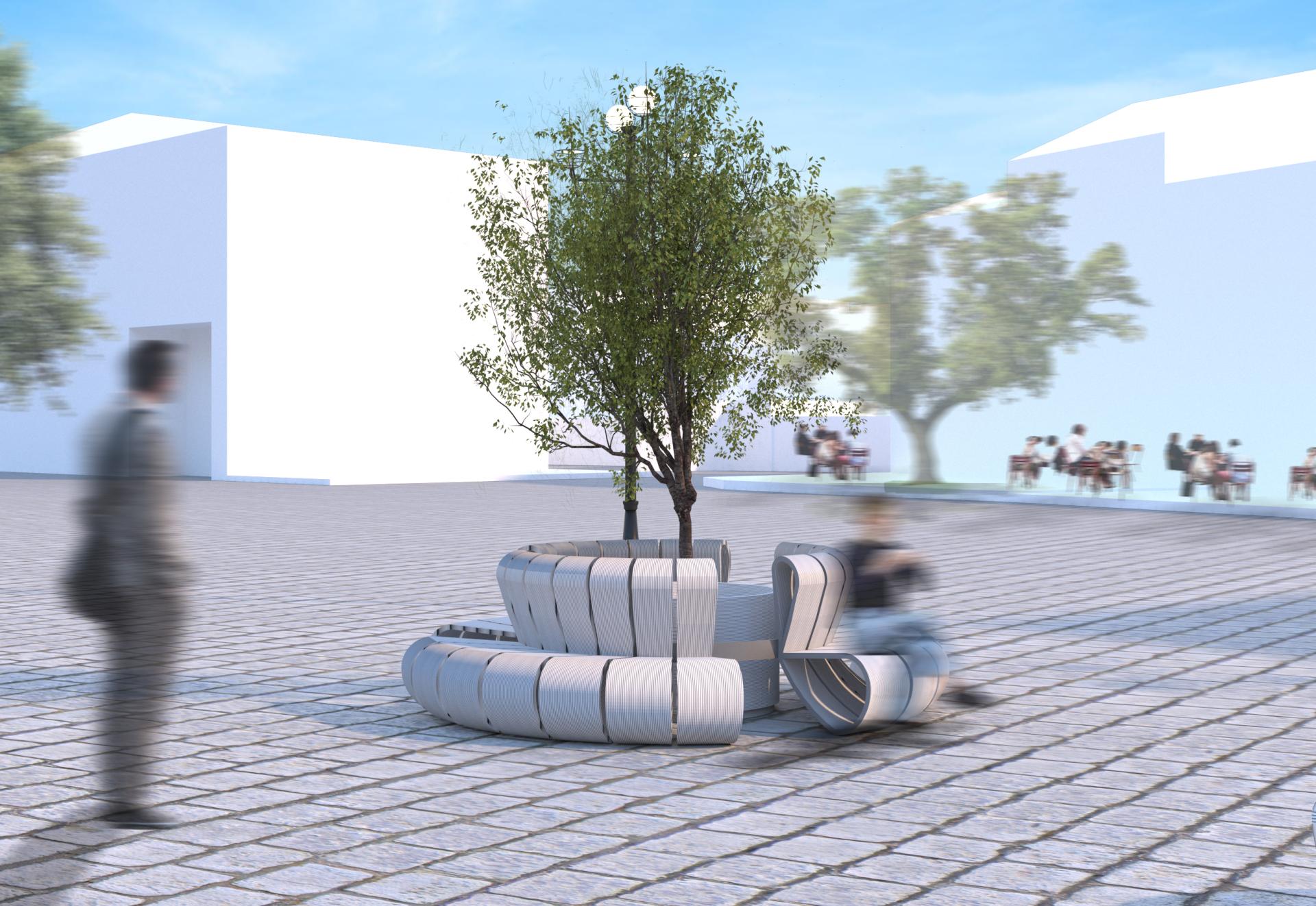 With this in mind we designed a public square inspired by a meaningful story and formed by contemporary furniture design.