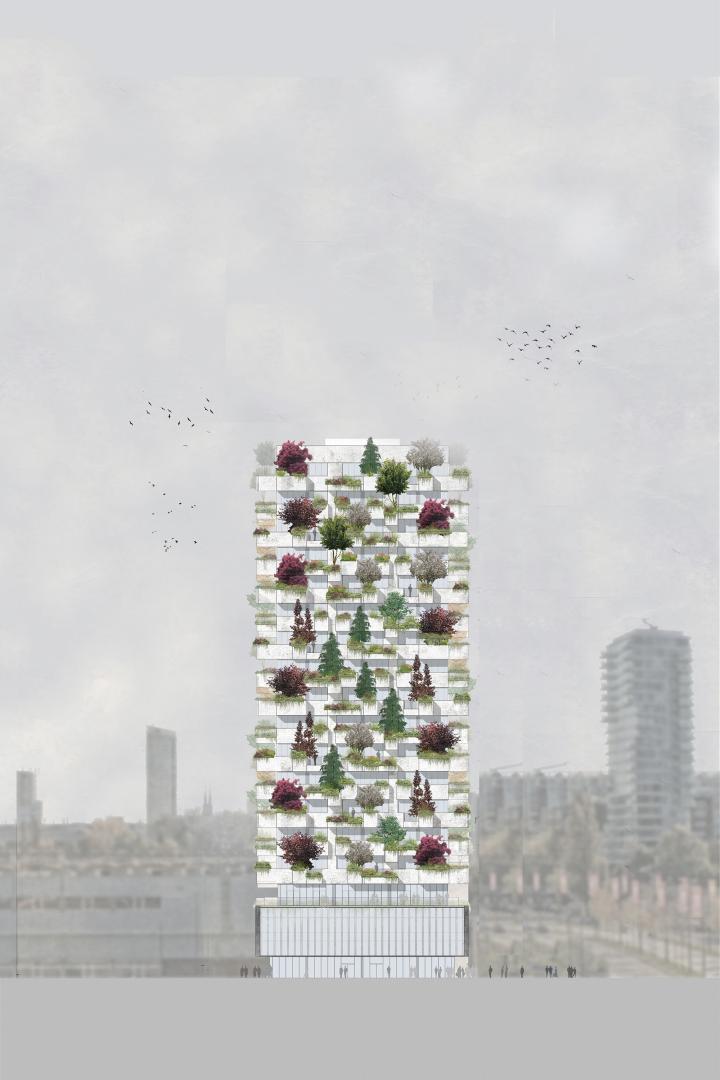 The Trudo Tower thus becomes an instrument of social inclusion, acting at the same time as a model for urban forestry, reconnecting people with living nature, and as a new solution for the city of the future. It will be necessary, in fact, to rethink our role as the predominant species in order to embrace the idea of an architecture of biodiversity which supports a variety of living species, not just the human one, as a dowel of a broader idea of urban forestation where the cohabitation between people, flora and fauna in enhanced and necessary for the mitigation of climate change and the sustainability of all specie.