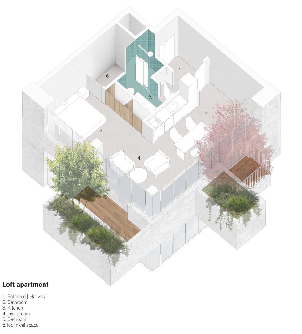 The Trudo Vertical Forest represents the achievement of a real milestone: by making the Vertical Forest typology accessible to everyone, even low-income tenants, the project demonstrates that living in contact with trees and greenery is not an exclusive prerogative, but can indeed become a viable choice for citizens with very different economic backgrounds. For instance, the building hosts students, young couples and professionals that had the chance of customizing common spaces in the building, open to all the citizens. The Trudo Vertical Forest succeeds in guaranteeing high quality, due to the flexibility of the interior spaces and their relationship to open spaces, in a building with a significantly reduced construction cost. The project does not only modify the urban landscape, but aims to define new housing standards for social housing and thus respond to environmental and housing issues.