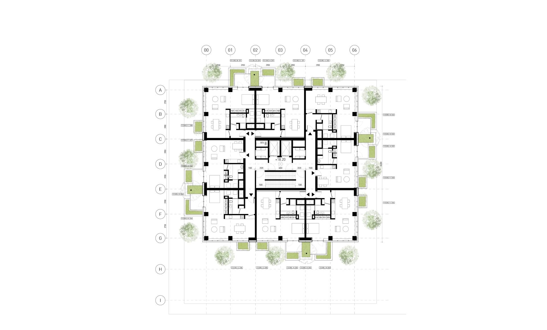 A technological innovation is associated to this aspect, linked to the choices made during the design phases aimed at economic and time savings during construction and completion, such as prefabrication of the main structure – with precast concrete –, modularity of the facades – with a small number of pot modules –, circular irrigation system and natural energetic savings thanks to the presence of a strong number of trees, plants and shrubs in the balconies on the elevations. In this regard, the experience of Milan Vertical Forest was extremely useful to acquire a know-how and to help innovating an architectural design that is shaped by the presence of the vegetation. The shape, size and various heights of the balconies are designed starting from the choices of native plants – in this case including Field maple, Cornus mas, Parrotia persica and prunus, with a maximum height estimated at around 6,5 mt. – elevating the vegetation to founding element of architecture.
