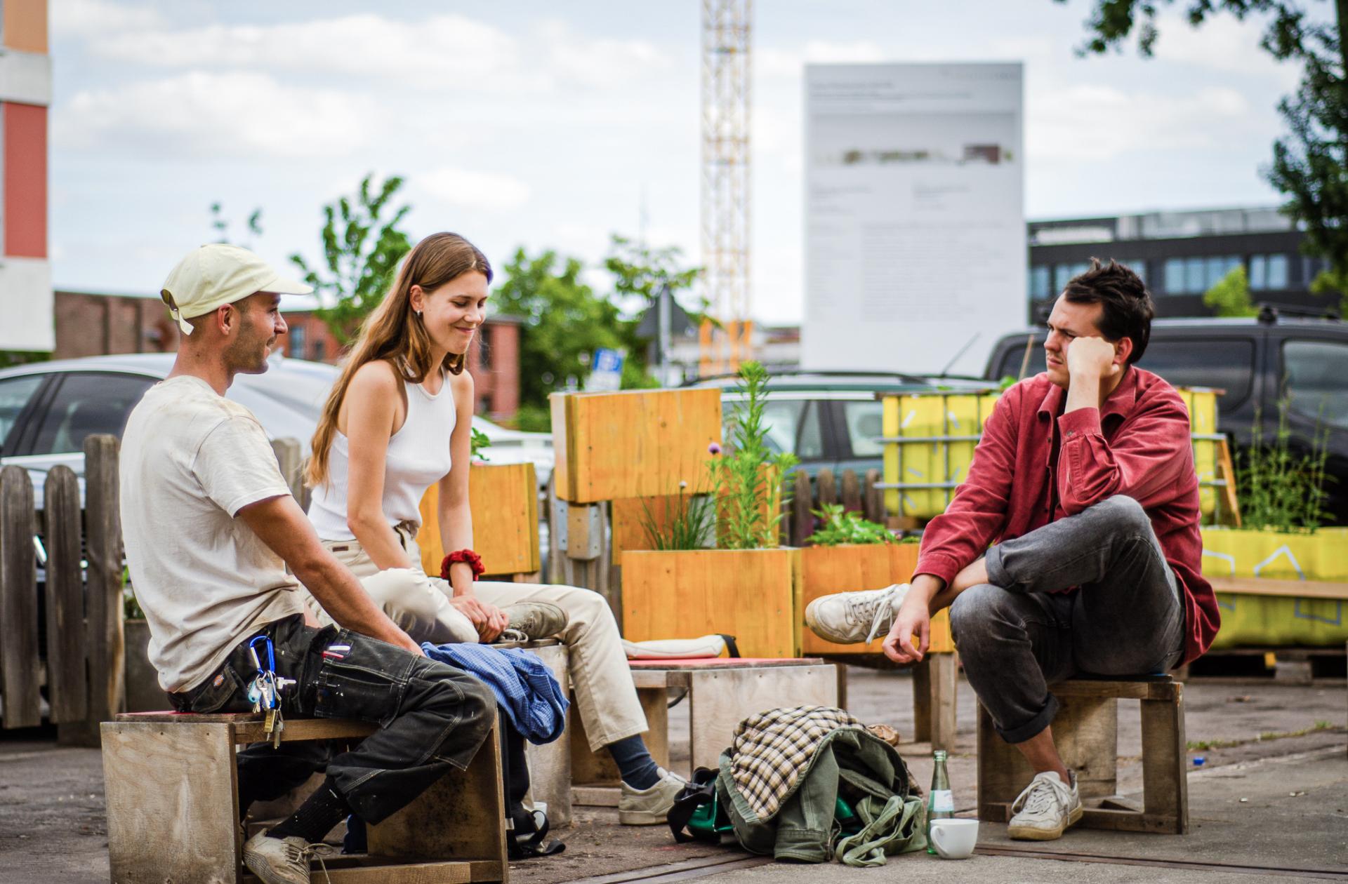 At the core of tunstadtmachen is the pedagogical belief that every human being is capable of learning something new just by trying. We believe that learning unfolds in dialogue and confrontation with each other. Therefore, we continuously practice an open attitude with a profound trust in people and their creative power, avoiding to establish distances in communication that only „experts“ can bridge. The trial and error mindset helps volunteers believe (who might have never built something or taken care of plants or …) that it’s about enjoying the process and doing it together. There are both formal and non-formal kinds of knowledge that contributed to the development of the project. Through the diverse profiles of participating locals with their individual expertise (carpenters, gardeners, social workers, mechanics, musicians, an accountant, …) we established a collective intelligence about „how to care for a common space.“ tunstadtmachen also collaborated with two different design universities. Students of Eco-Sign received the challenge to design and build structures from recycled materials that can facilitate encounters between people. Some made benches and tables from a fence they found in the area, turning an object that is designed to separate to an object designed to connect. Under the guidance of professor Carolin Höfler of the Köln International School of Design, students worked around the topic of „Open Universities: How public spaces can be used to exchange knowledge.“ On another movie night we showed a film about the traffic change in modern cities. After the movie the director and the neighbors had a real interesting discussion about the challenges of that transformation. It was so inspiring to see the different perspectives that were shared. An older lady from the perspective as a pedestrian discussing with a quite young boy in the perspective as a bicycle rider led again the conclusion that sustainable transformation can only be reached together.