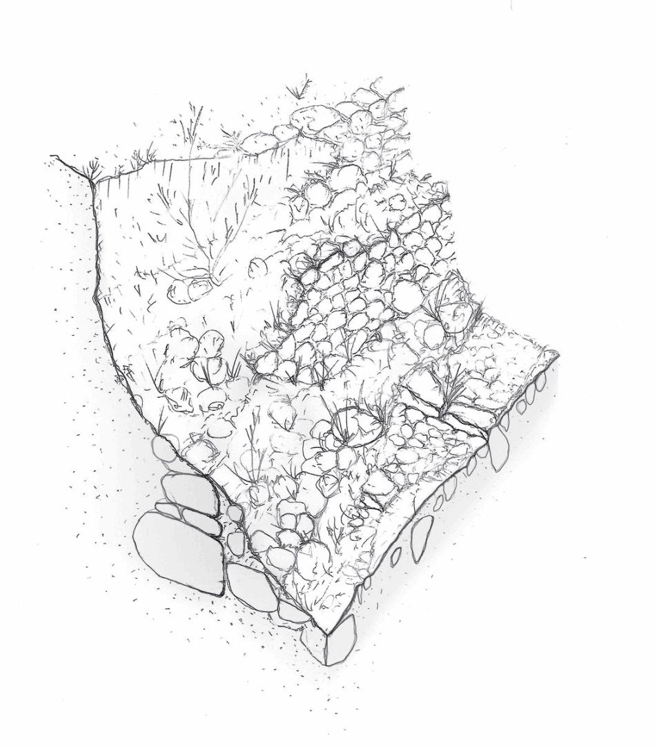 265 sq.m. of the central cobbled pathway, 150 sq.m. adjacent walls and two underground water cisterns (approx. 30 sq.cm. each) were restored.
