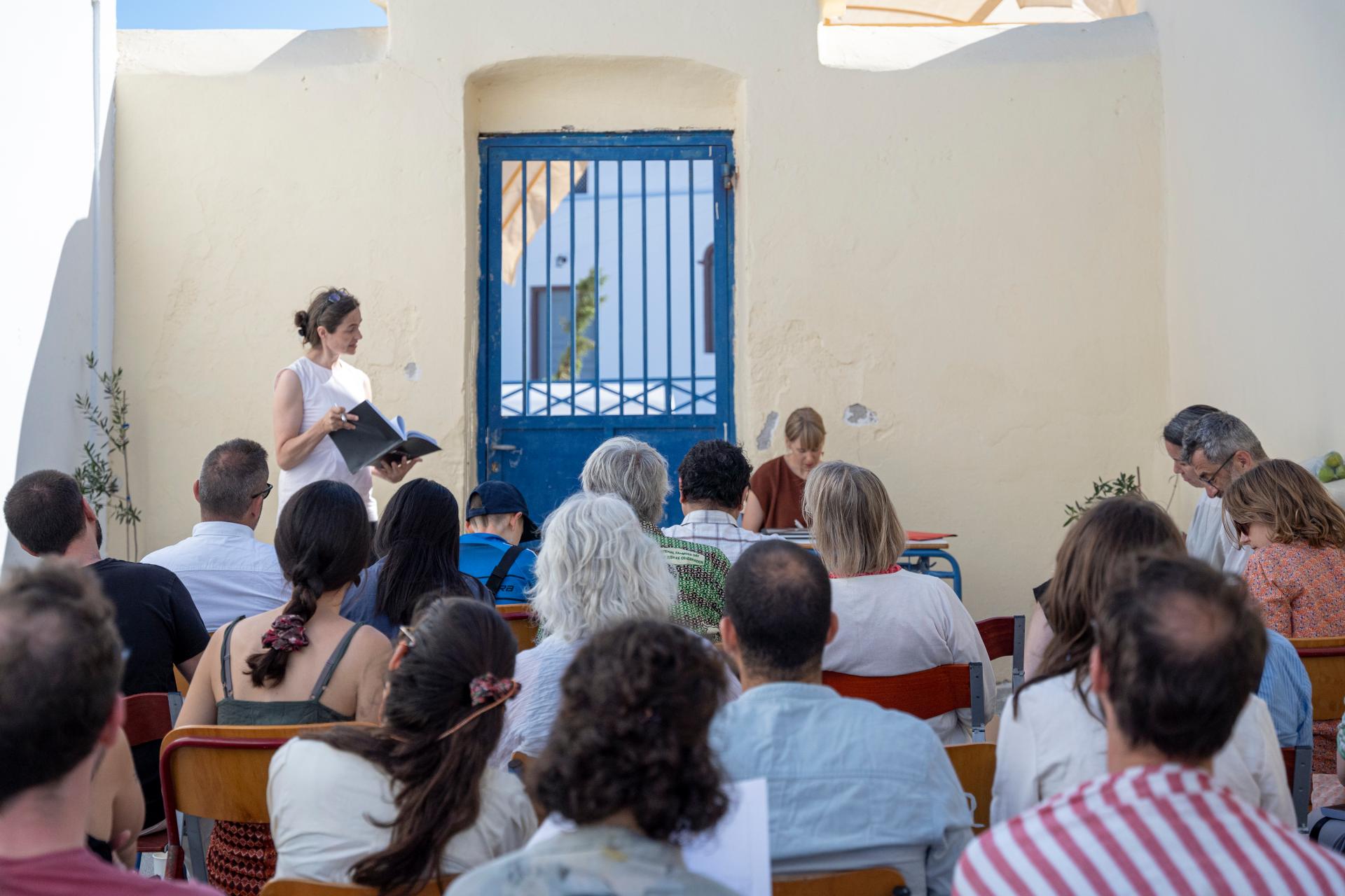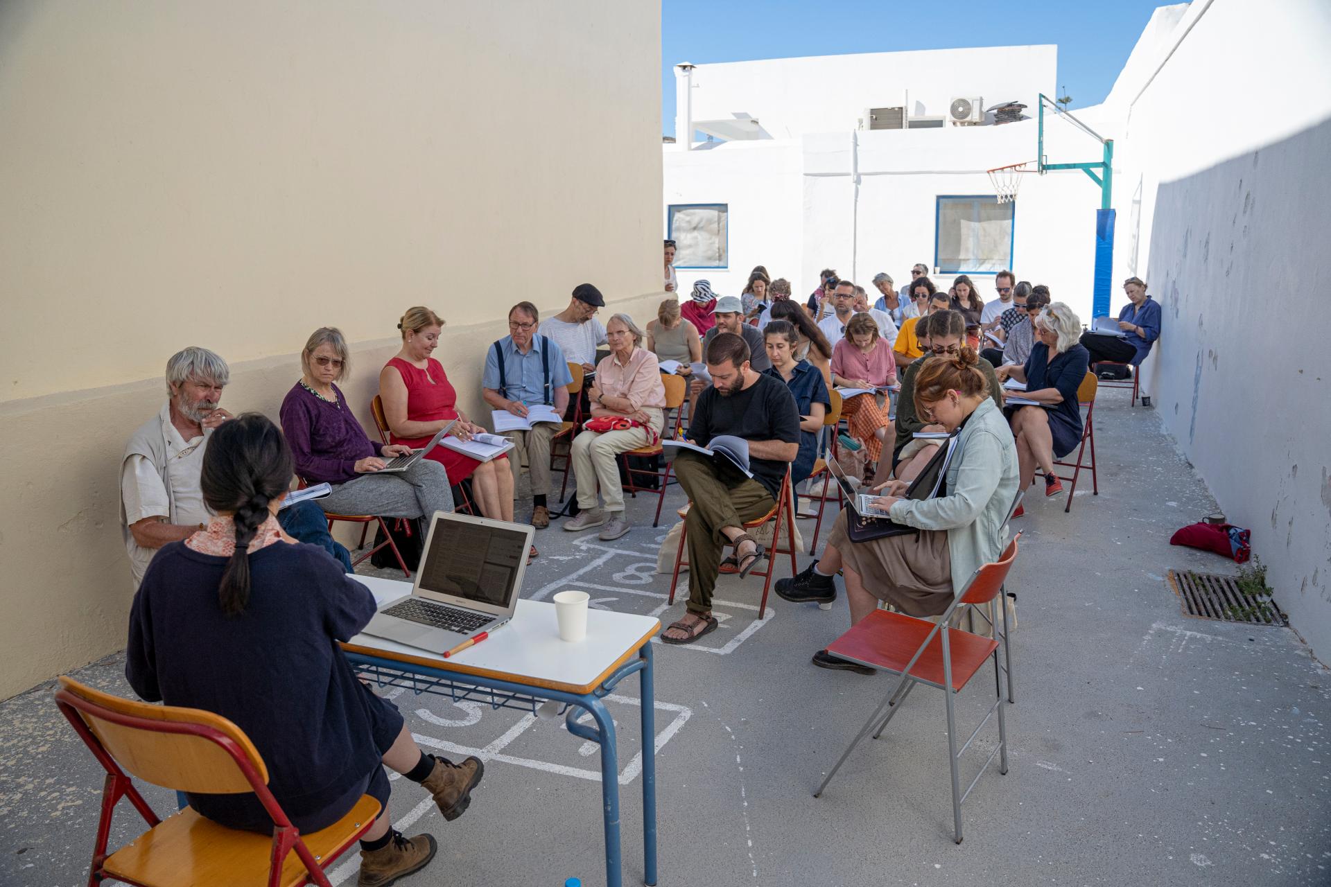 The symposium was a two-part event: The first day took place in Santorini, as a conference, open to the public with four keynote lectures. In the following three days, the symposium moved to the island of Therasia in the form of an itinerant, outdoor workshop focused on the research of the selected participants. Four sessions, each chaired by one of the keynote lectures, took place in a different location in Therasia. The Symposium concluded with a final keynote lecture open to the public, back in the island of Santorini. All symposium activities were documented through graphic harvesting technique.