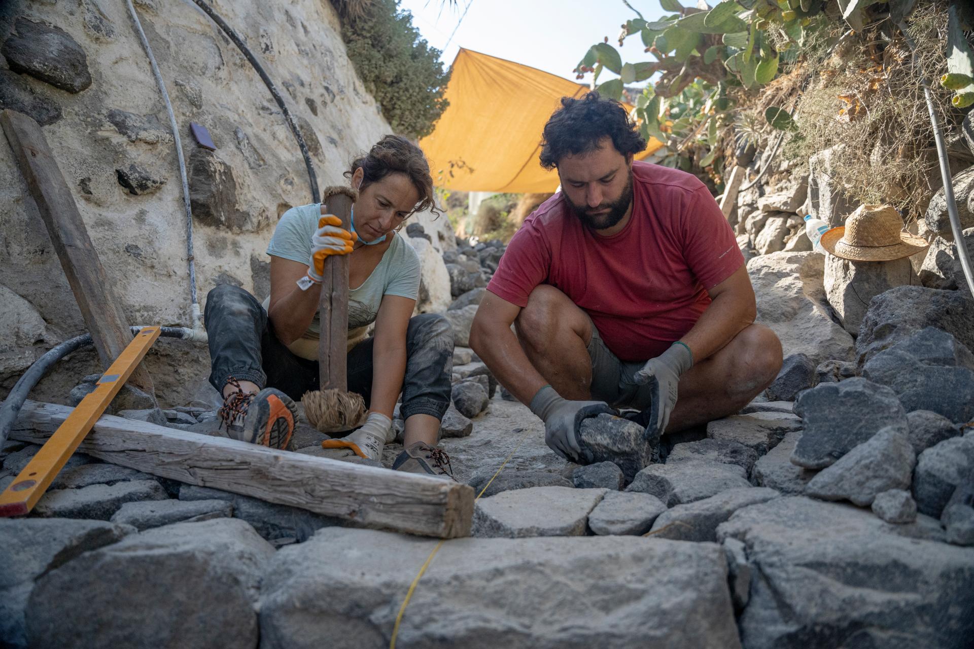 Training and (up)skilling. Under the Landscape has 'given back' to the community a restored cobbled pathway, two functional underground water cisterns in function and four trained masons, who will continue to live and work in Santorini, Therasia and the Cyclades. The project contributed to the upskilling of various professionals emphasising the need for vocational training and diversified educational programs on heritage building crafts. It also demonstrated how actual restoration projects can be leveraged as participatory learning opportunities.