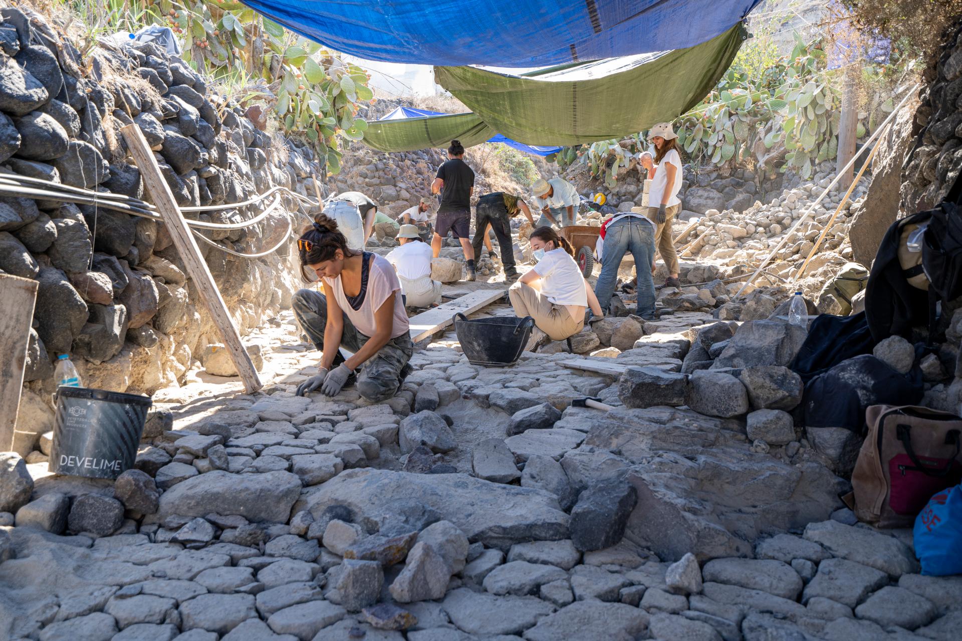 Another key objective was reinstating the functionality between the cobblestone and the cisterns for water management, contributing to the research of how traditional solutions can assist in tackling water scarcity, especially in this arid Aegean land. Locals indiscriminately use the terms 'road' and 'river' to refer to the pathway, as it functioned as a river’s bed with the seasonal flow of the streams, directing water to the cisterns.