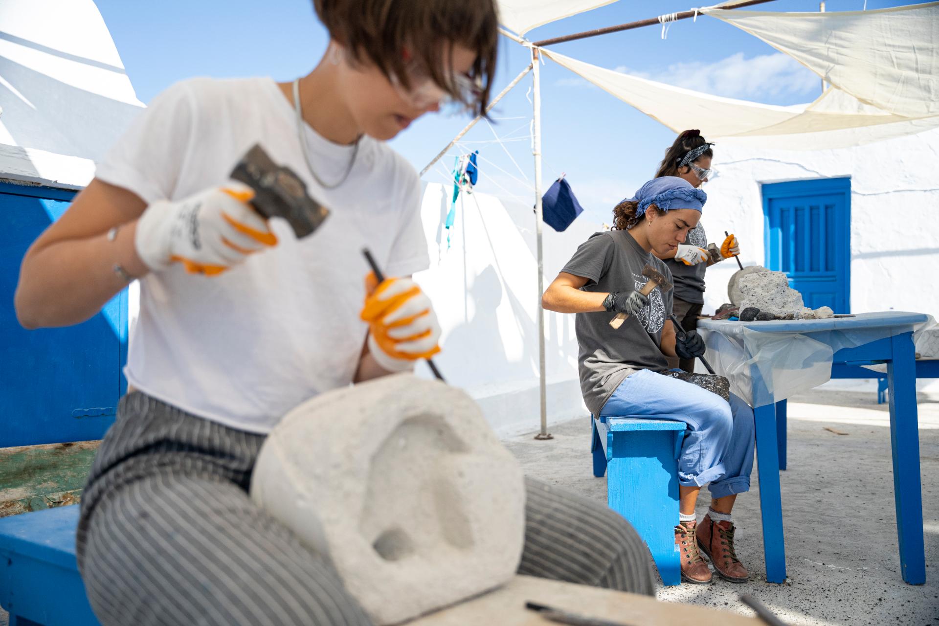 Within the same timeframe, and for the duration of two weeks, a workshop was addressed to students and professionals from Greece and abroad, in two directions: one for the hands-on training on local techniques and materials through the restoration works and one for young artists who used traditional mortars for creating sculptural artworks.
