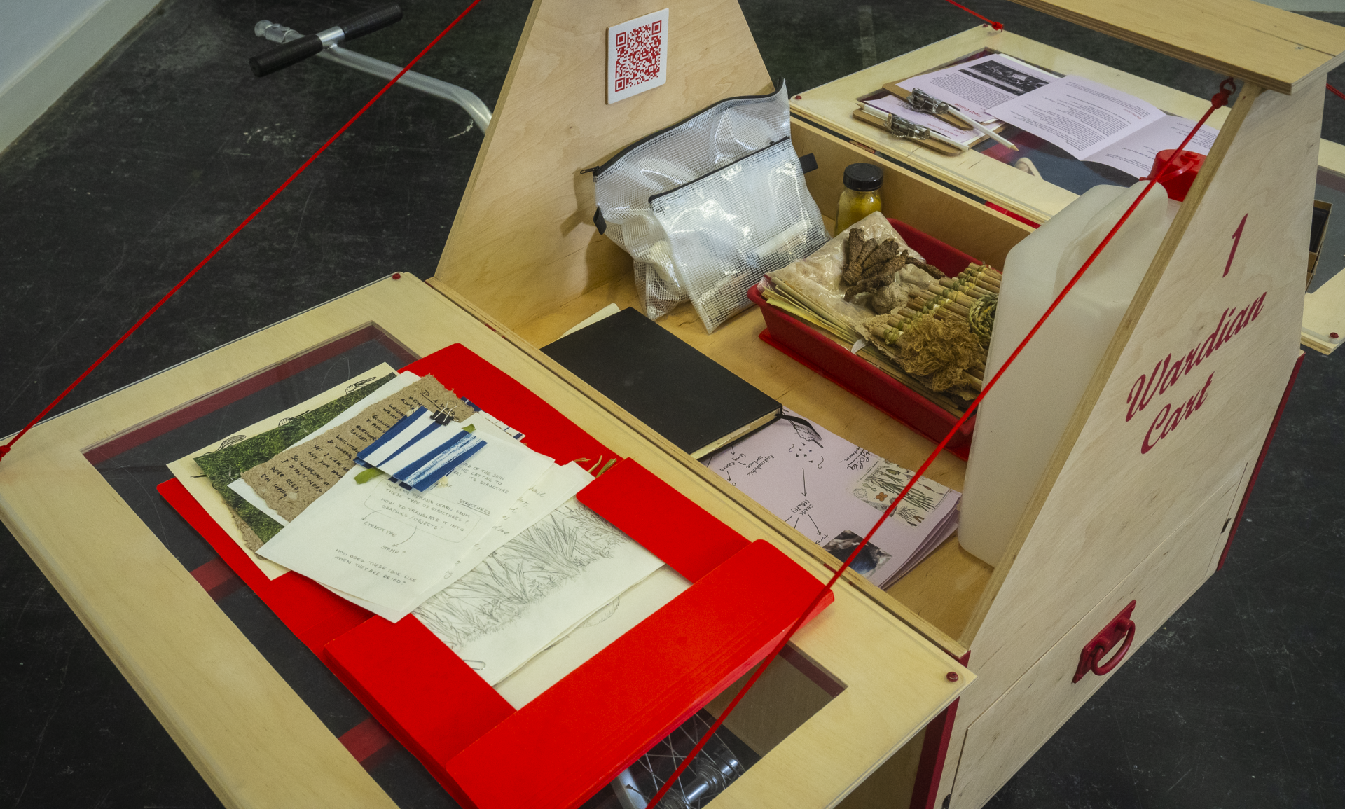 How can we imagine different ways of looking at and knowing about plants beyond established botanical systems? Wardian cart is a traveling research station that facilitates other ways of knowing, based on embodied views and experimental methodologies that encourage reflection and empathy toward our environment. The cart tries to re-imagine the colonial botanical artifact “Wardian case” into a tool for workshops to re-frame botanical heritage as a learning tool for a more symbiotic future.