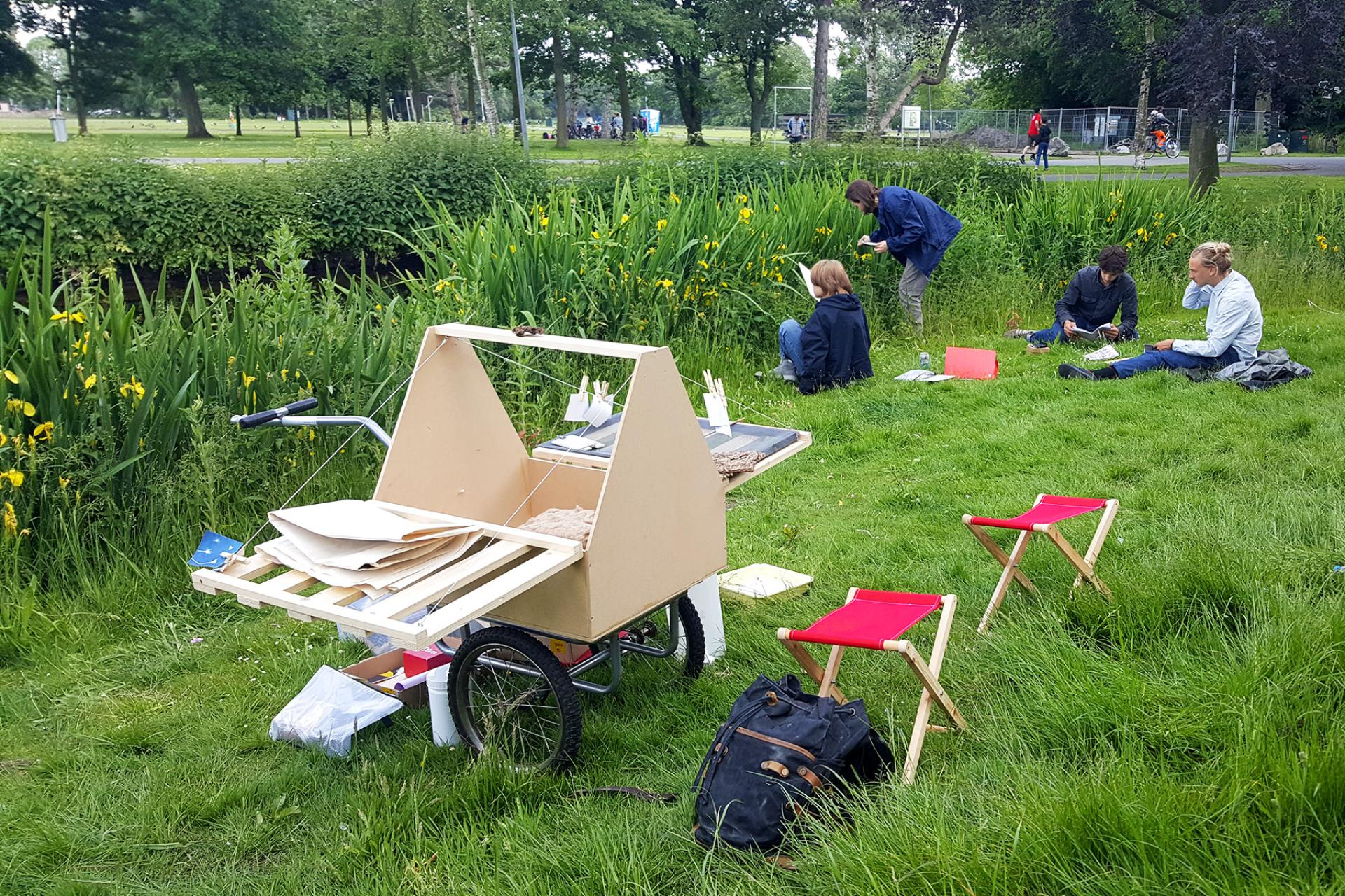 My wish is to bring back the sense of responsibility and co-dependence in ways of learning about plants by encouraging embodied and situated practices. Therefore I used the Wardian cart to travel around the city of den Haag to the spaces where a certain plant resides (parks, pavements) and interacts with other beings in their environment. By going to the plant instead of taking the plant outside of its living space, we could learn directly from the plant by smelling, feeling, listening, observing, and noticing. To document the experiences and to develop an alternative archive or imaginative herbarium, I used methods like reflections, storytelling, conversations, and imaginaries.