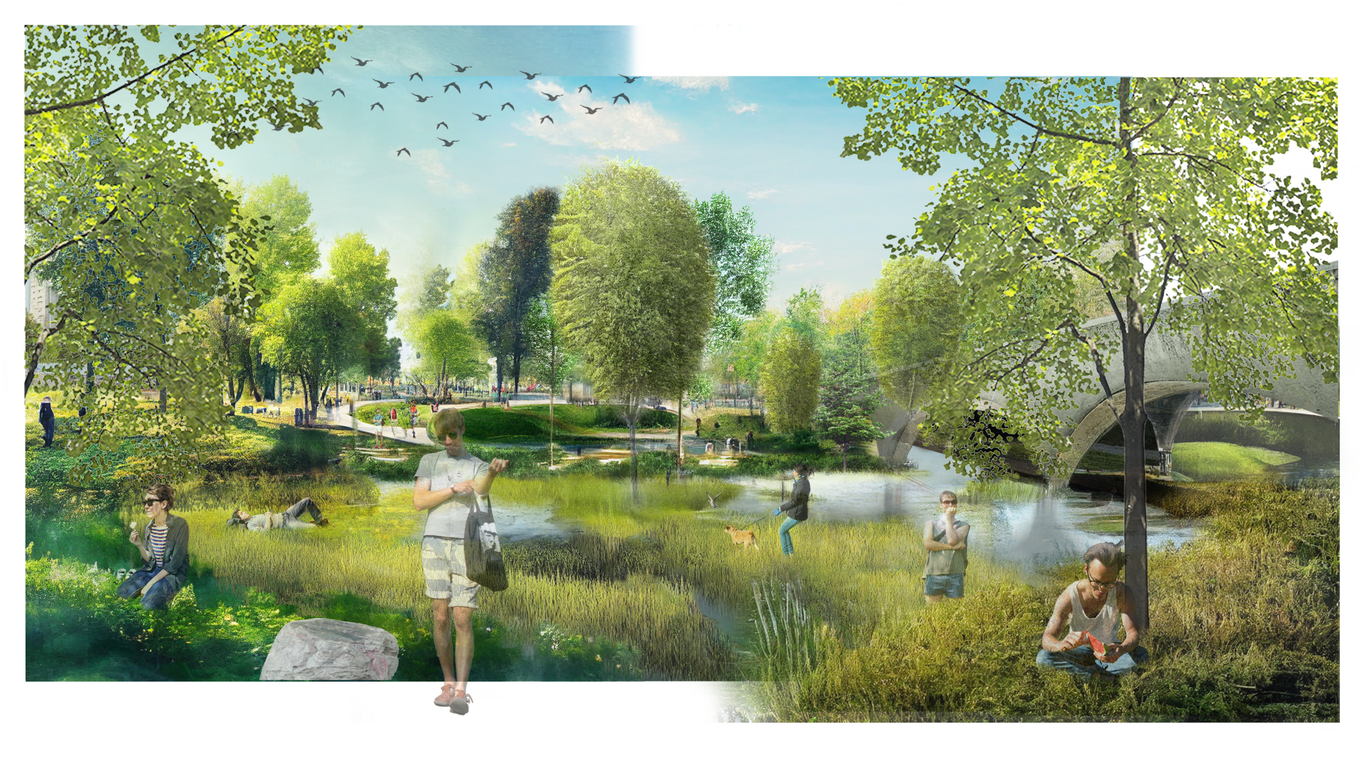 The green revolution caused by the deculverting of the Olona seeks to redeem the now lost "water spirit" of the city, reconnecting the citizens with their 'water heritage' and enhancing a sense of belonging in Milan, strategy that has show a strong success in case studies such as the "Darsena Waterfront" renovation in 2015 along the 2015 Expo, and the "Naviglio Martesana" requalification. The transformation caused by the project is visible in the reprogramming of green open spaces, which incorporates a variety of vegetal species capable of carrying out 'soft engineering' such as phytoremediation and phytodepuration processes, changing throughout the year, delivering new and rich experiences through the interaction of the senses, exploring diverse textures, colors, smells, and visual perspectives that engage with people's positiveness.