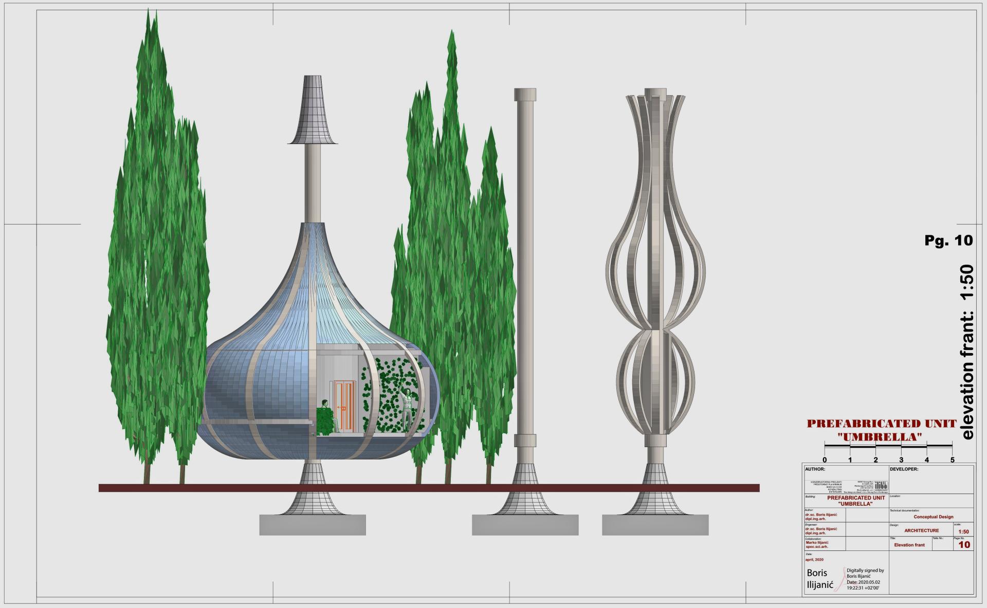 Whether this direction of sociological development is the right one, time will tell, but it can be stated that it is present. Nevertheless, this building, Umbrella Prefabricated Unit, can also be a motif of urban sociological quality in the classical, traditional sense. If carefully selected locations for grouping these UPU, in attractive natural sites, or locations with significant cultural assets, can be a motif for such a way of socializing.