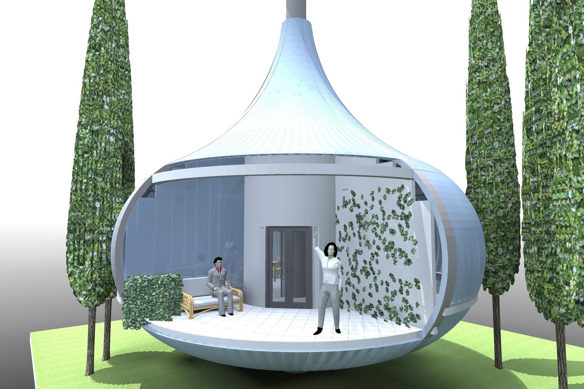 In general, there were some requests for making theory of a specific design for prefabricated small houses, a flexible space, easy manufactured, transported, and located on the site. This presentation is submitting an idea of flowering buds from the natural world, In that system, as it is umbrella , this idea is presented, for one small prefabricated dwelling house, naturally also with possible multifunction of purpose and use, and a large space joining more units in one space use.