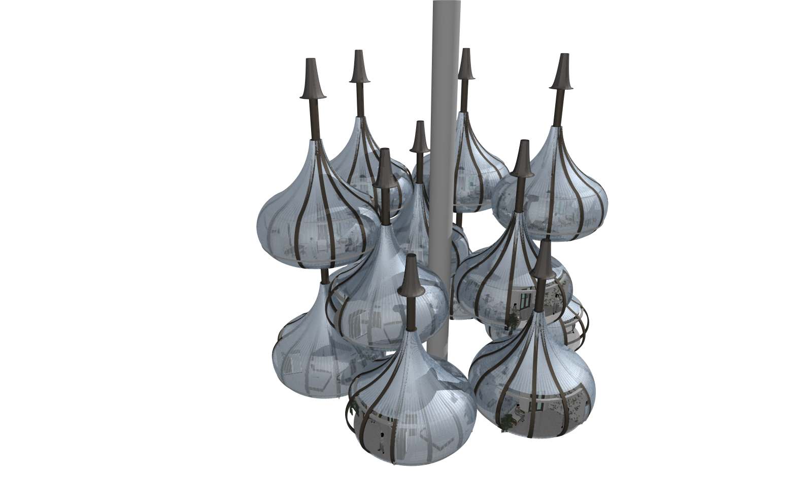 This presentation is submitting an idea of flowering buds from the natural world, In that system, as it is umbrella , this idea is presented, for one small prefabricated dwelling house, naturally also with possible multifunction of purpose and use, and a large space joining more units in one space use.