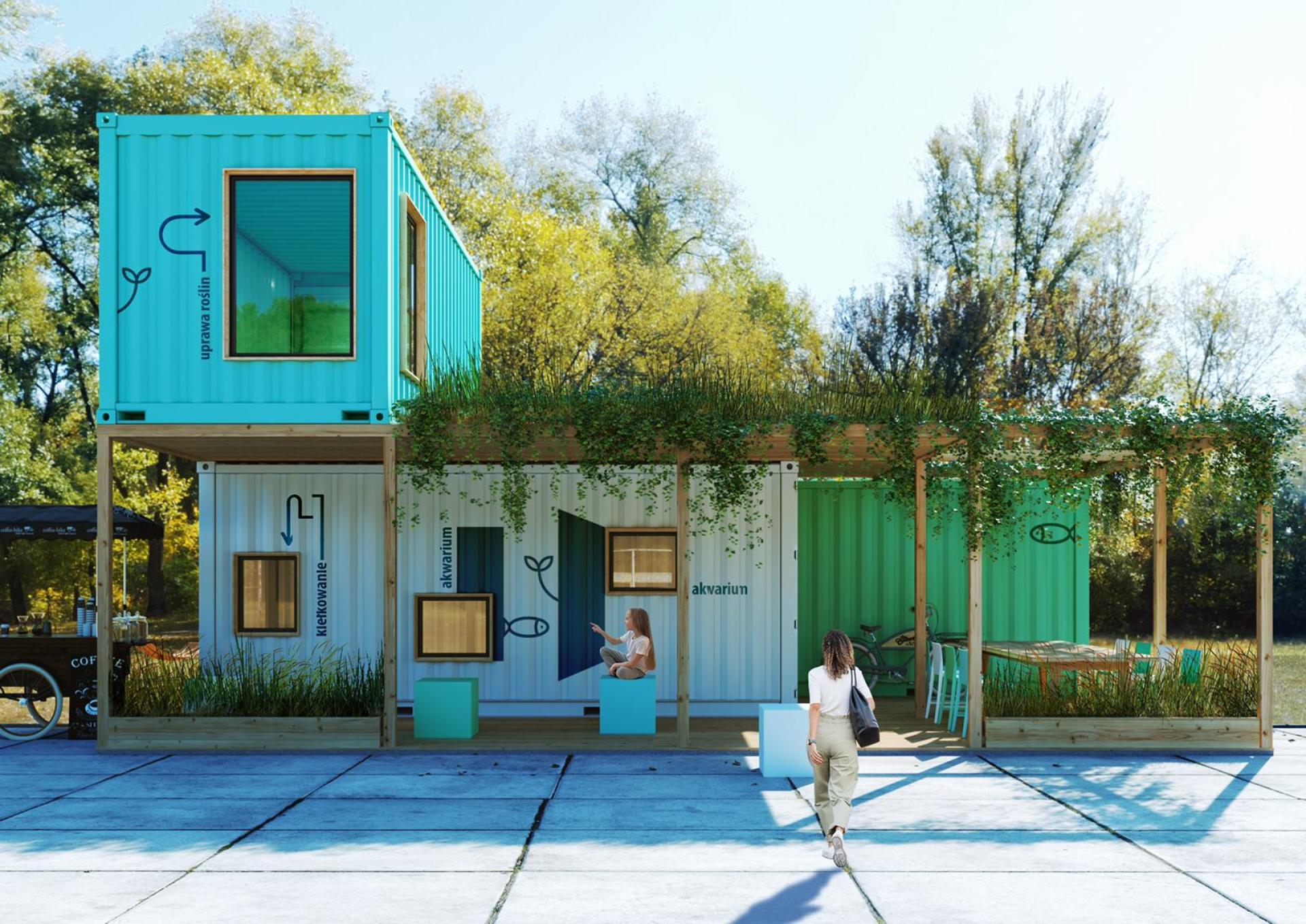 Our mobile aquaponic farm - “Urban AquaFarma” built from recycled sea containers in Wroclaw, Poland, is a place for breeding and growing animals and plants in a closed aquaponic system, with a planned green roof and a system for collecting and treating rain and stormwater, supplementing water losses. The design of heating, cooling, air conditioning and ventilation assumes the use of renewable energy sources - heat pumps, photovoltaic panels, a solar roof. The mobile installation is a ready-made system to be used by city dwellers, i.e. when introduced by construction developers or by those responsible for urban regeneration and neighbourhood refurbishments. Furthermore, our project ensures a holistic approach to water, energy and food nexus, a synergy of three resources necessary to ensure human security. Apart from the already mentioned green energy, this security is provided by water savings (we use up to 90% less in hydroponic and aquaponic systems than in case of traditional agriculture), healthy food produced in cities and their outskirts in closed, pesticide-free conditions, without the need to use chemical protection agents plants. The added value is the maximum shortening of the supply chain (hence the much lower CO2 emissions from transport).