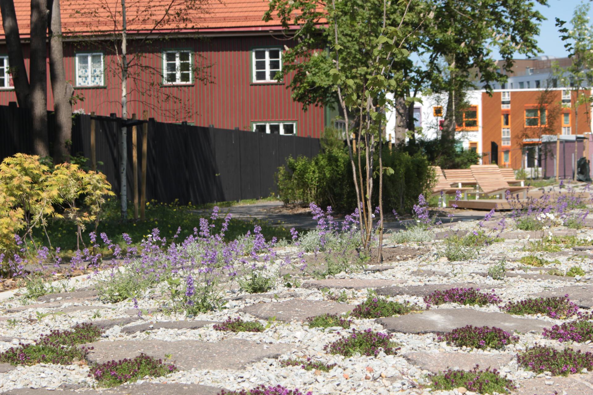 In addition to new planting, the existing shrubs and trees were honored and the design tried to accommodate their needs, improve their growing conditions. The aim was to support self-generating nature and rainwater seepage into the ground to improve the city's micro-climate.