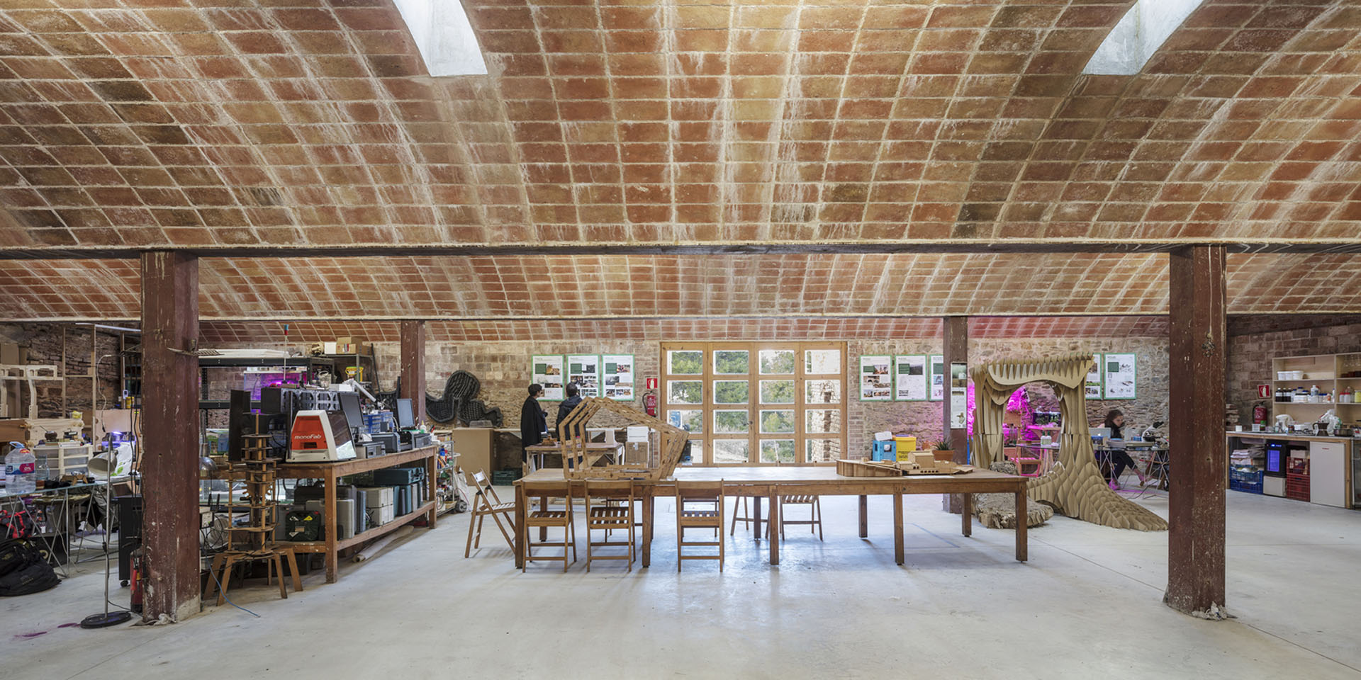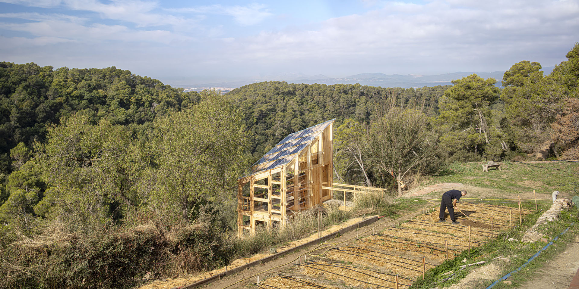 10km from Barcelona the Institute for Advanced Architecture of Catalonia's Valldaura Labs comprises 140ha of forest where global student cohorts learn-by-living in a renovated farmhouse hosting digital fabrication tools alongside a carpentry, gardens and domestic/educational spaces. Practising sustainable forest management to harvest their own 0km lumber and produce cross-laminated timber with an on-site mill and press, students complete one circular self-sufficient prototype building each year.