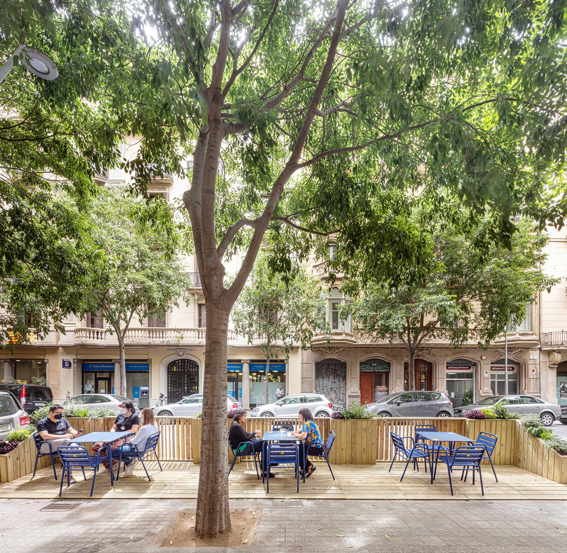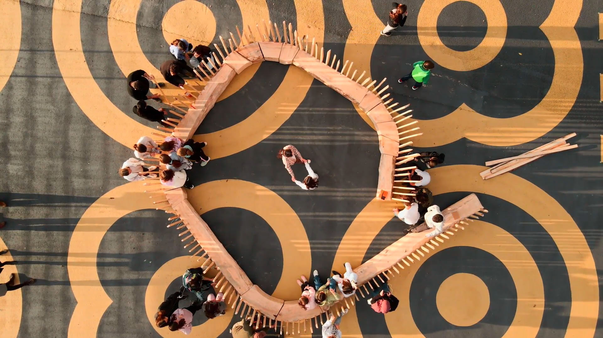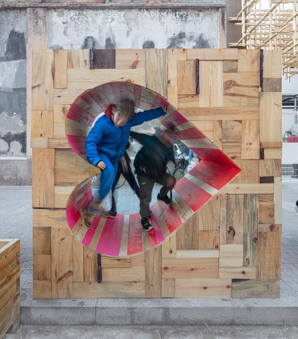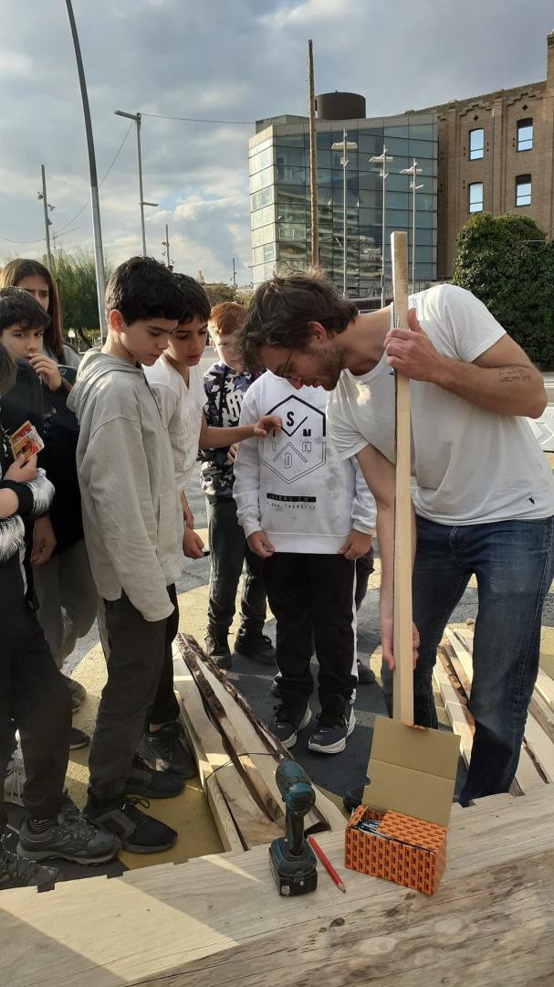 Apart from the benefits of VL projects to public spaces and the citizens they serve introduced above, citizens and civil society are intimately engaged as co-creators. In the 2021 edition of FURNISH, a ‘cloud’ of wooden frames marking the Escola Entença entry/exit was designed as a system of small, lightweight modules which amalgamate into a larger form. This enabled the young students, along with their teachers, to actively participate in the assembly under supervision of VL researchers and the MAEBB cohort. Thus the installation transformed into a vibrant street festival piquing the curiosity of passersby. For the 2022 edition, VL researchers and MAEBB students engaged classes of 4th graders at Escola Provençals in co-design sessions with guided sketching activities. It was during these sessions that the desired functions of outdoor classroom, musical performance venue and gathering space were identified. Again the young students were able to participate in the installation due to the modular, lightweight, rapidly-assemblable and non-toxic character of the wooden components. OPEN NATURE also engaged young students from 4 urban schools in forest lessons and co-design building sessions at VL. Besides, repeat dialogue between VL’s MAEBB cohort and locals at meetings of the neighbourhood association abutting the project site served the dual purpose of garnering public support and informing the project with place-based knowledge, such as the history of a defunct ancestral fountain accordingly prioritised for renovation. OPEN NATURE’s installation likewise became a festival, with many community members who attended the meetings bringing friends and family to assist the construction, similarly optimised for accessibility through reliance on natural materials such as wood and earth. As with the aesthetic and experiential value of VL projects, the participatory co-creation processes foster a sense of belonging or communal ownership leading towards collective stewardship.