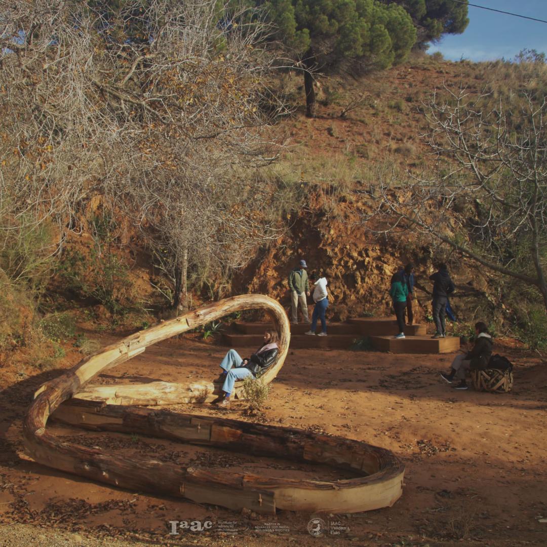 VL is exemplary in the context of inclusion due to the value assigned to and created in urban public spaces by VL projects. Of the 3 aforementioned editions of FURNISH, the first in 2020 oversaw implementations in 7 sites throughout 5 European countries using natural materials (mainly timber) processed with digital design techniques and fabrication technologies to produce modular, rapidly deployable urban elements making outdoor public spaces safer and more comfortable for use during COVID-19. Ranging from street furniture to traffic barriers, dining terraces, learning places and music amplification devices, these elements offered a wealth of social experiences to citizens unable to participate in indoor activities for fear of infection. VL designed and fabricated wooden terraces for open-air dining in Barcelona, and mentored the local design teams associated with installation sites in other nations. The second edition of FURNISH in 2021 featured VL installations for Barcelona’s Escola Entença, providing the underserved population of students aged 3-8 with nature-based elements for creative play, along with universally enjoyable sculptural elements. The third edition of FURNISH in 2022 featured an outdoor classroom, gathering and performance space realised by VL in collaboration with Barcelona’s Escola Provençals to serve young students aged 3-12 in addition to the pedestrian public of the highly trafficked area near the Glòries park. Still, VL is more uniquely exemplary in the context of inclusion due to value assigned to and created in periurban public spaces. VL’s EIT Community New European Bauhaus-funded Opening Public Edge Natures as Networks for Accessible Transitional Urban Re-connection and Education (OPEN NATURE) project completed in December of 2022 combined ecological restoration of a degraded transitional area at the border of Barcelona and the Collserola Park with new public amenities made of natural materials serving adjacent low-income residents.