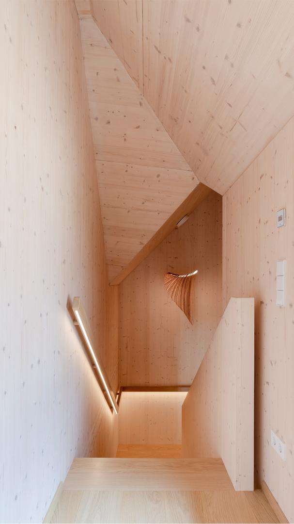 The idea to use CLT came from the architects, an attractive option without a steep learning curve, but with many opportunities as far as geometry was concerned.