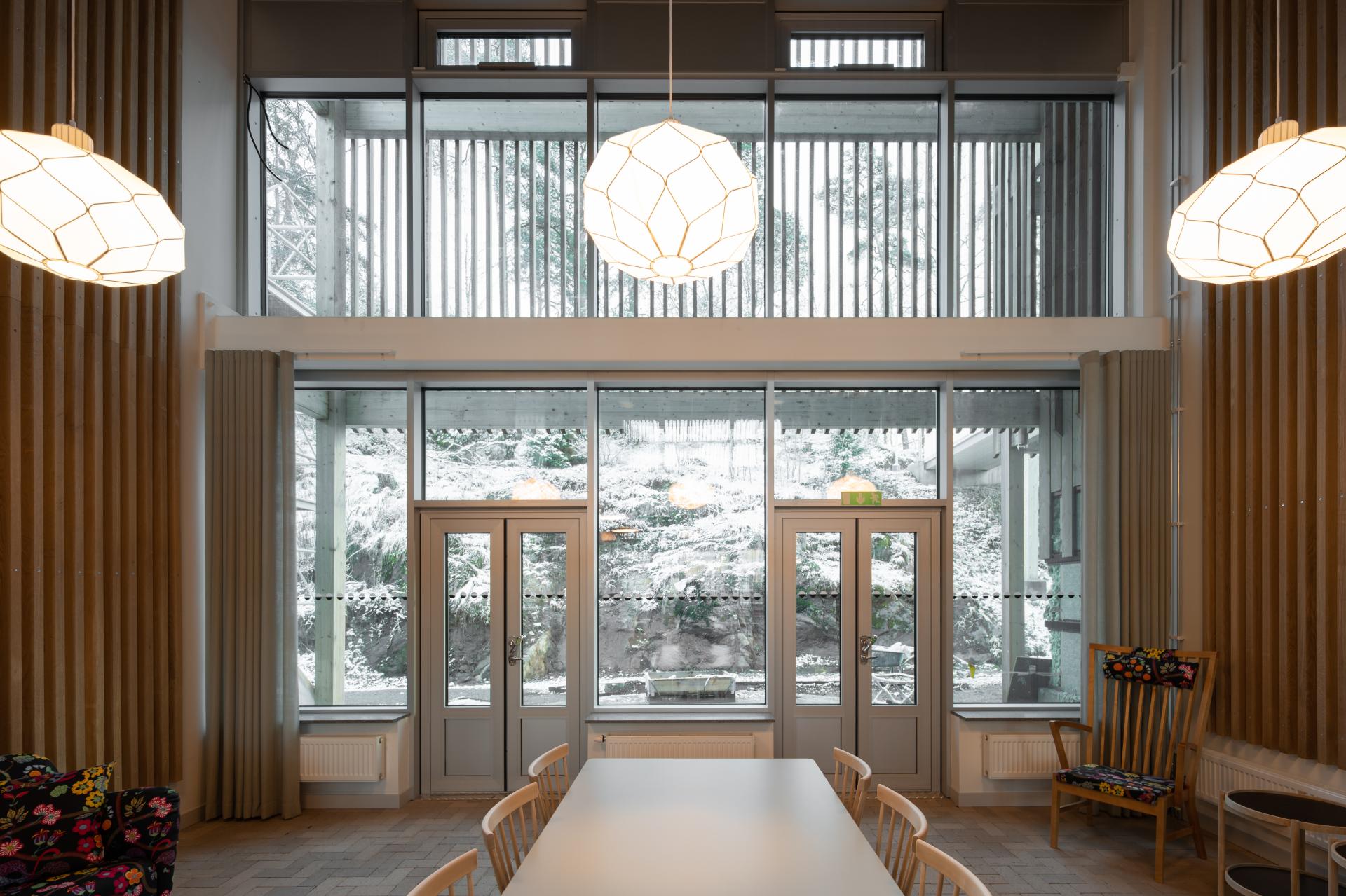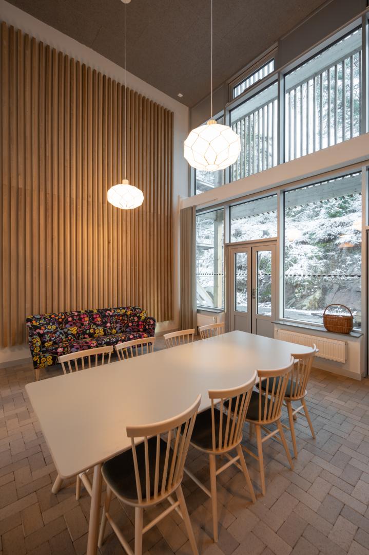 The numerous social spaces have been used for different purposes during the uptil now short period från realization until now. The winter-garden has been the place for a pop-up local, art gallery, meetings and vocal performances during qhristmas season. The day center is in use for various activities using the kitchen, dining room, stage and atelier.