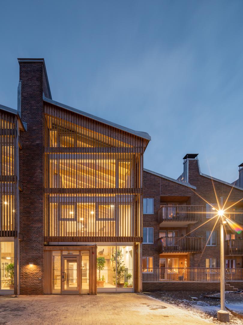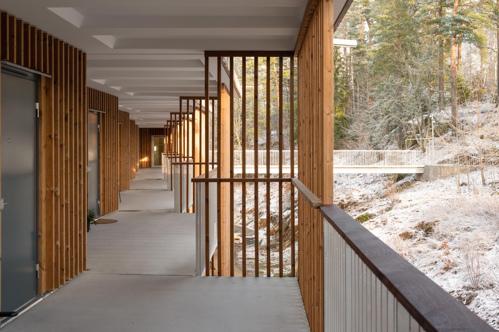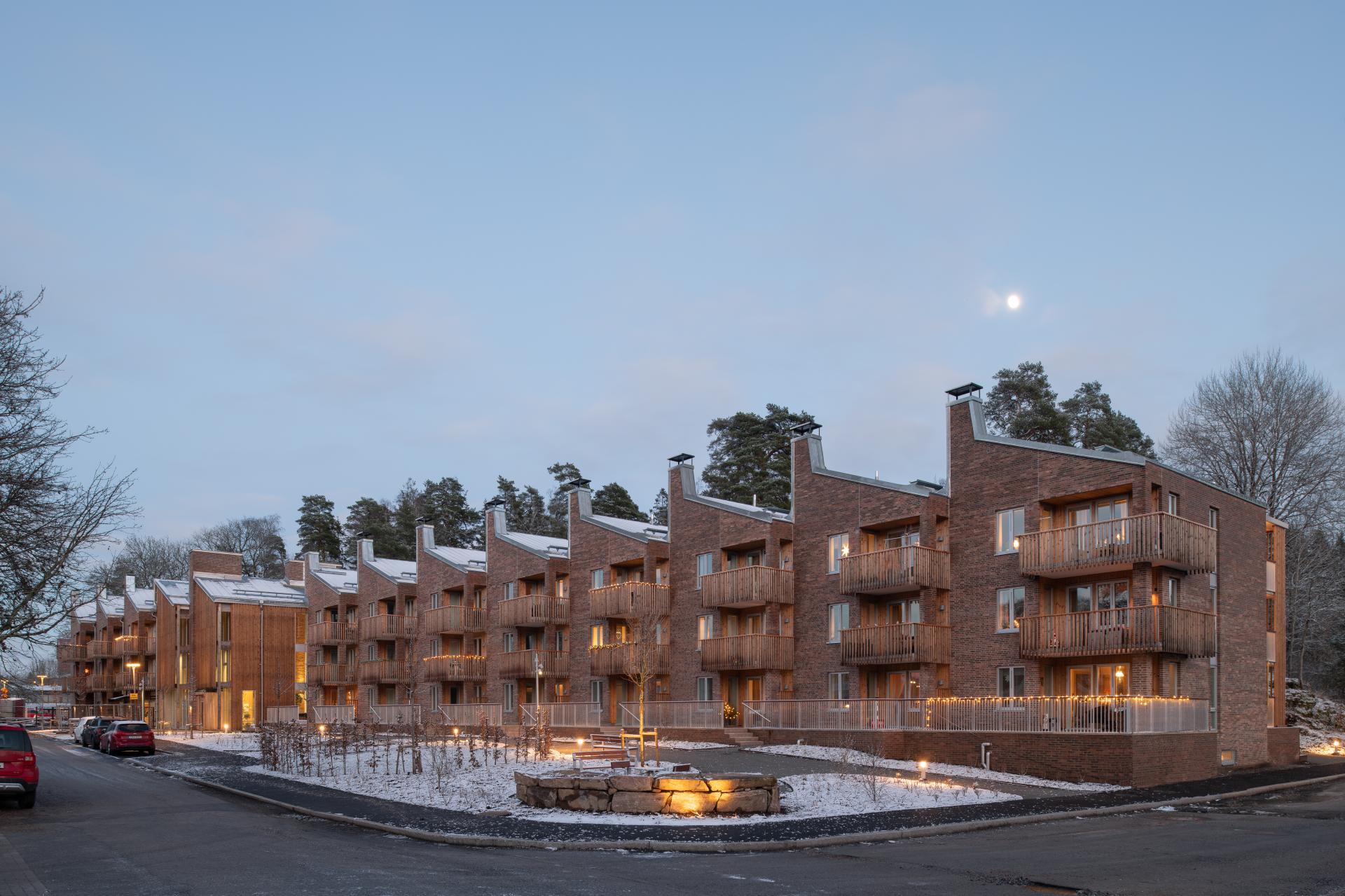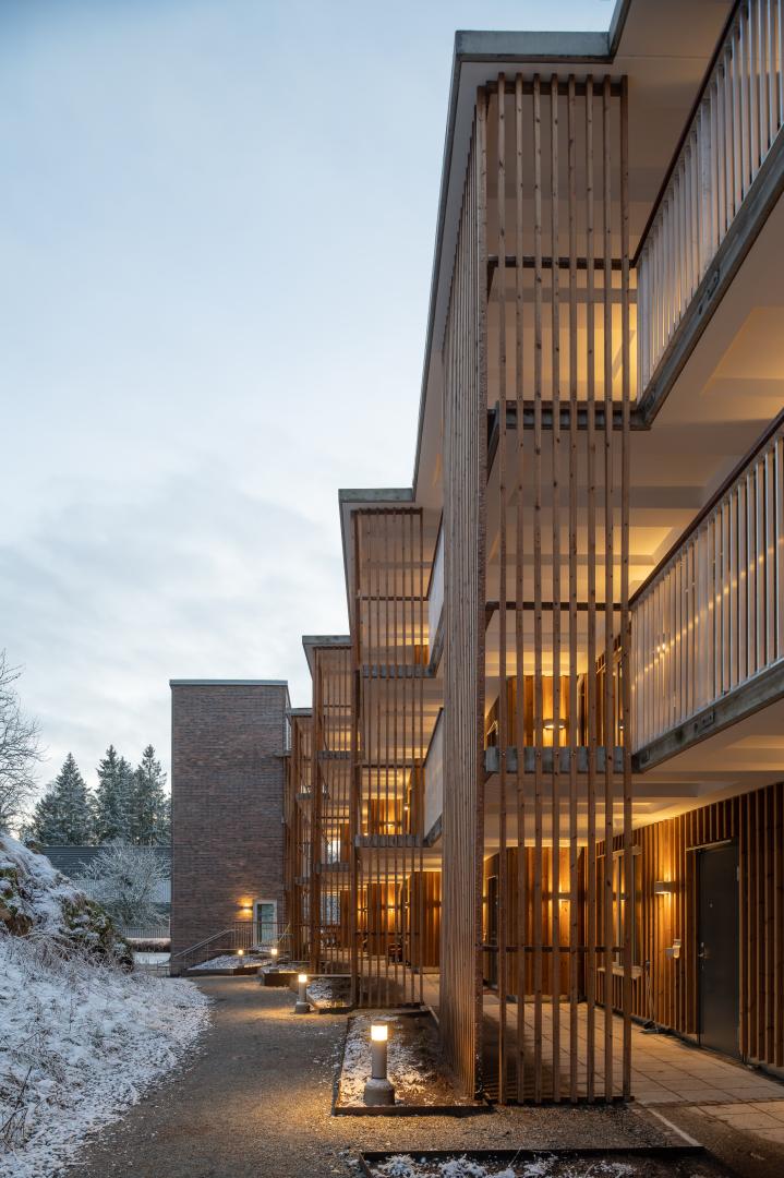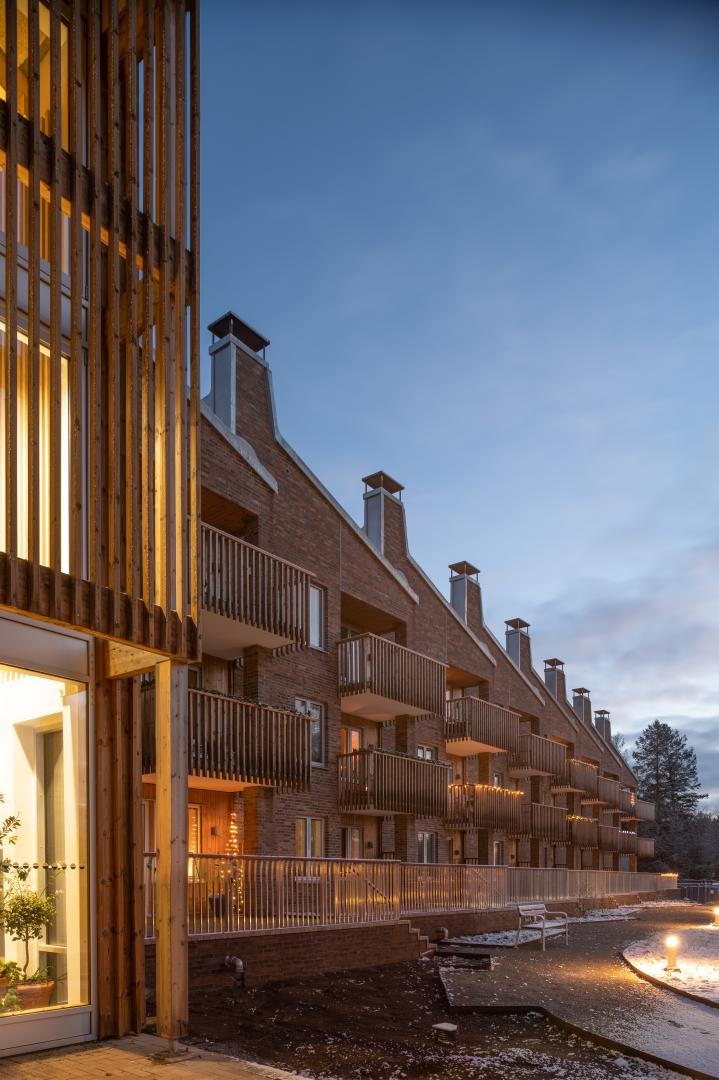 Certain measure are exceptional for being a residential project in this small scale, buildt by a local municipal housing company with just a handful of employees. For example the span into the nature, the spatial social areas, the ambition to make space for public to use the garden close surroundings and the brave investment in high quality building materials.