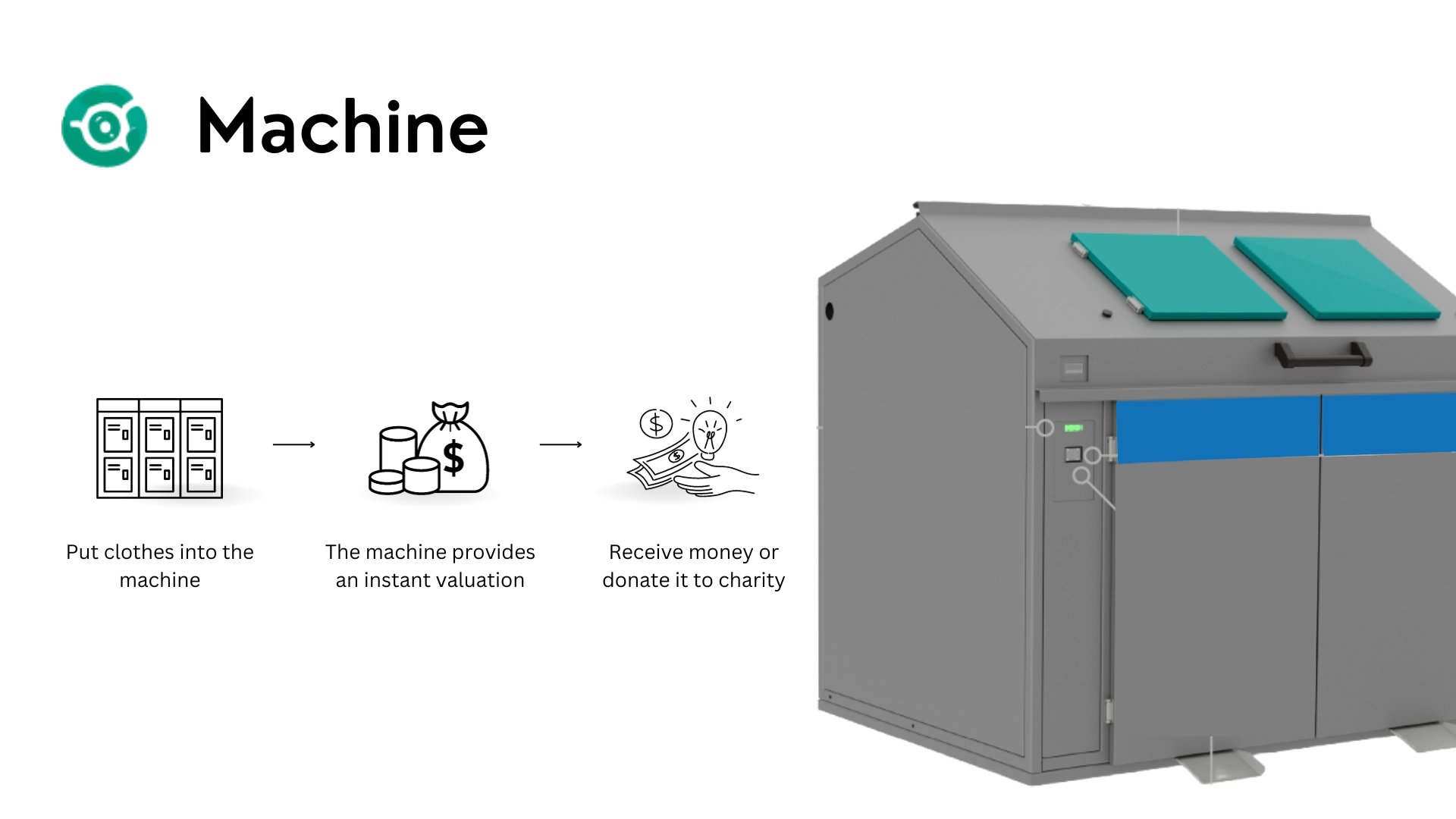 User-Friendly Experience: Users simply deposit their used clothing into the machine, and the machine's image analysis and scanning technologies quickly assess and value the textiles. This instant verification and valuation process is convenient for users.